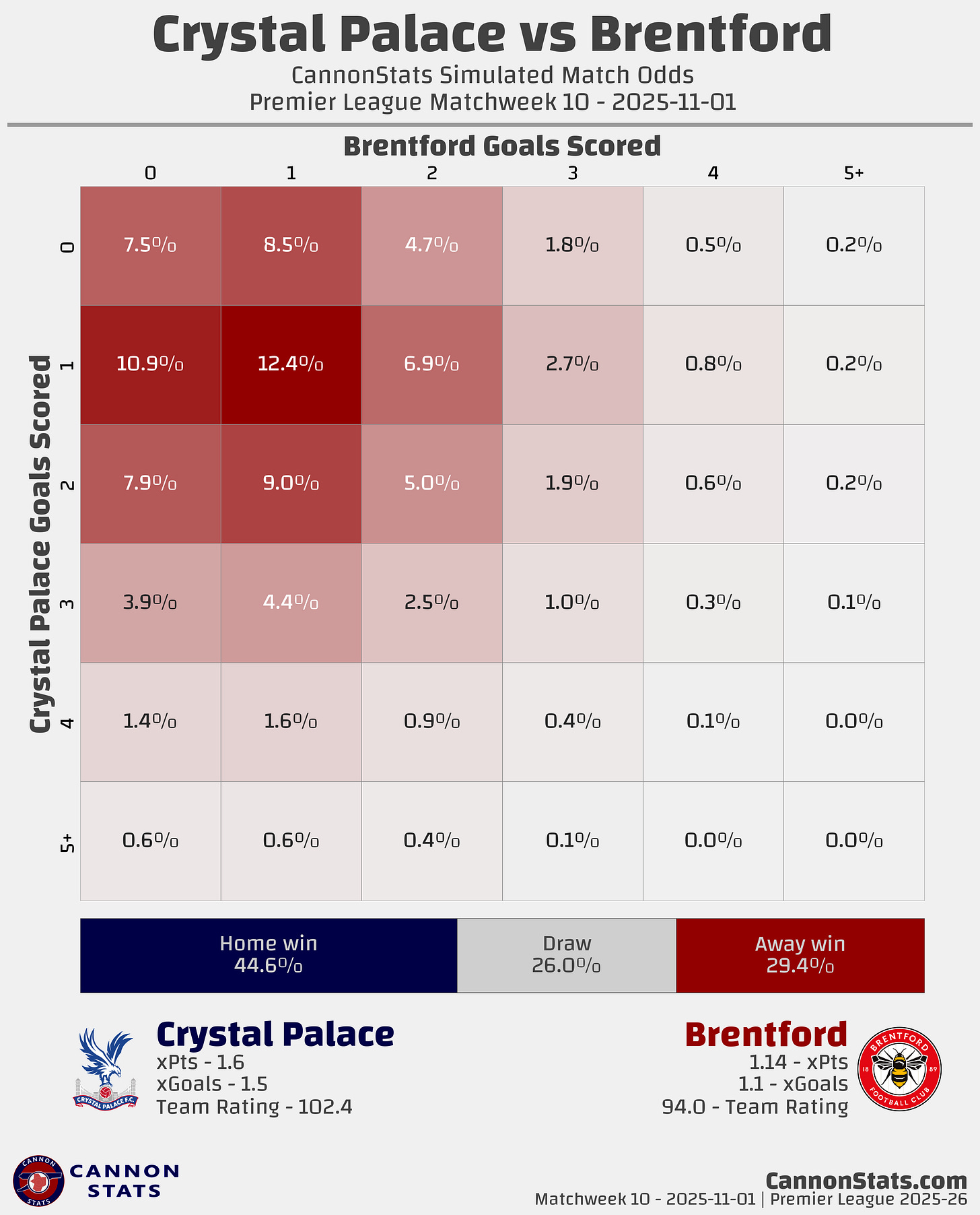 Brentford: Scott - 29.4%, Betting - 24.8%, Opta - 24.6%