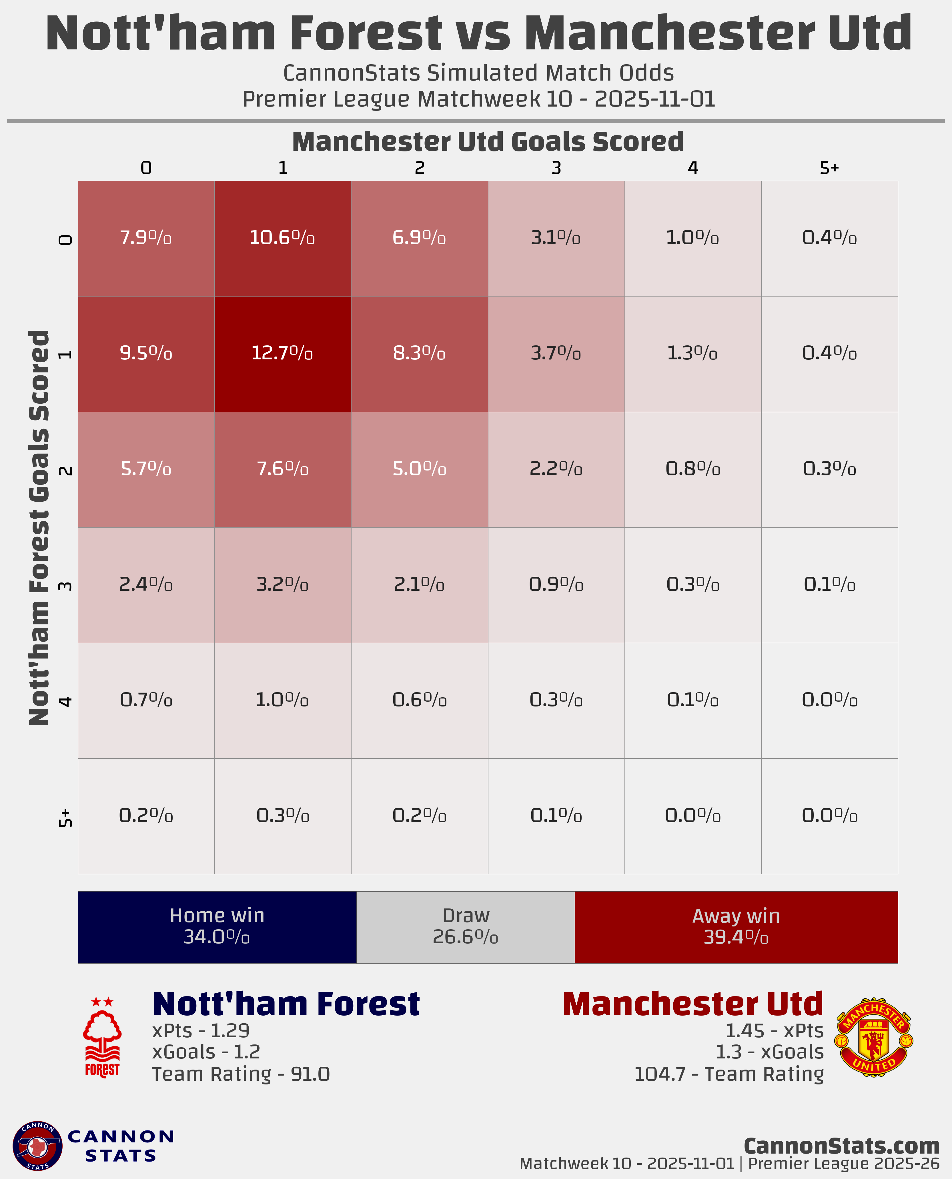 Nott’ham Forest: Scott - 34.0%, Betting - 28.7%, Opta - 38.1%