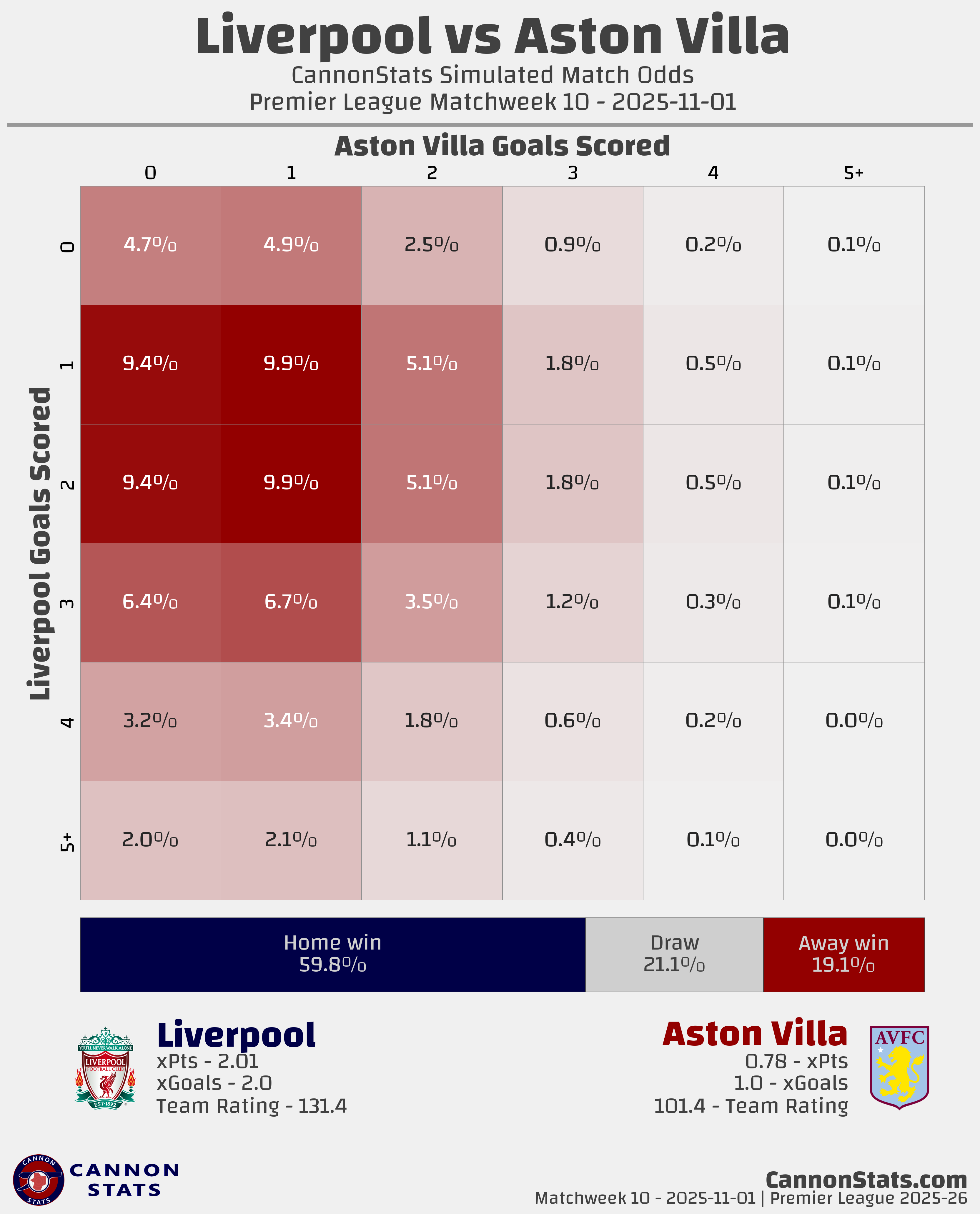 Liverpool: Scott - 59.8%, Betting - 57.9%, Opta - 56.9%