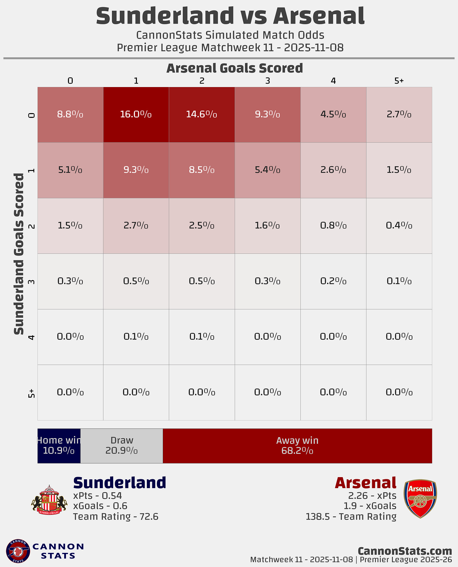 Sunderland: Scott - 10.9%, Betting - 11.1%, Opta - 13.5%