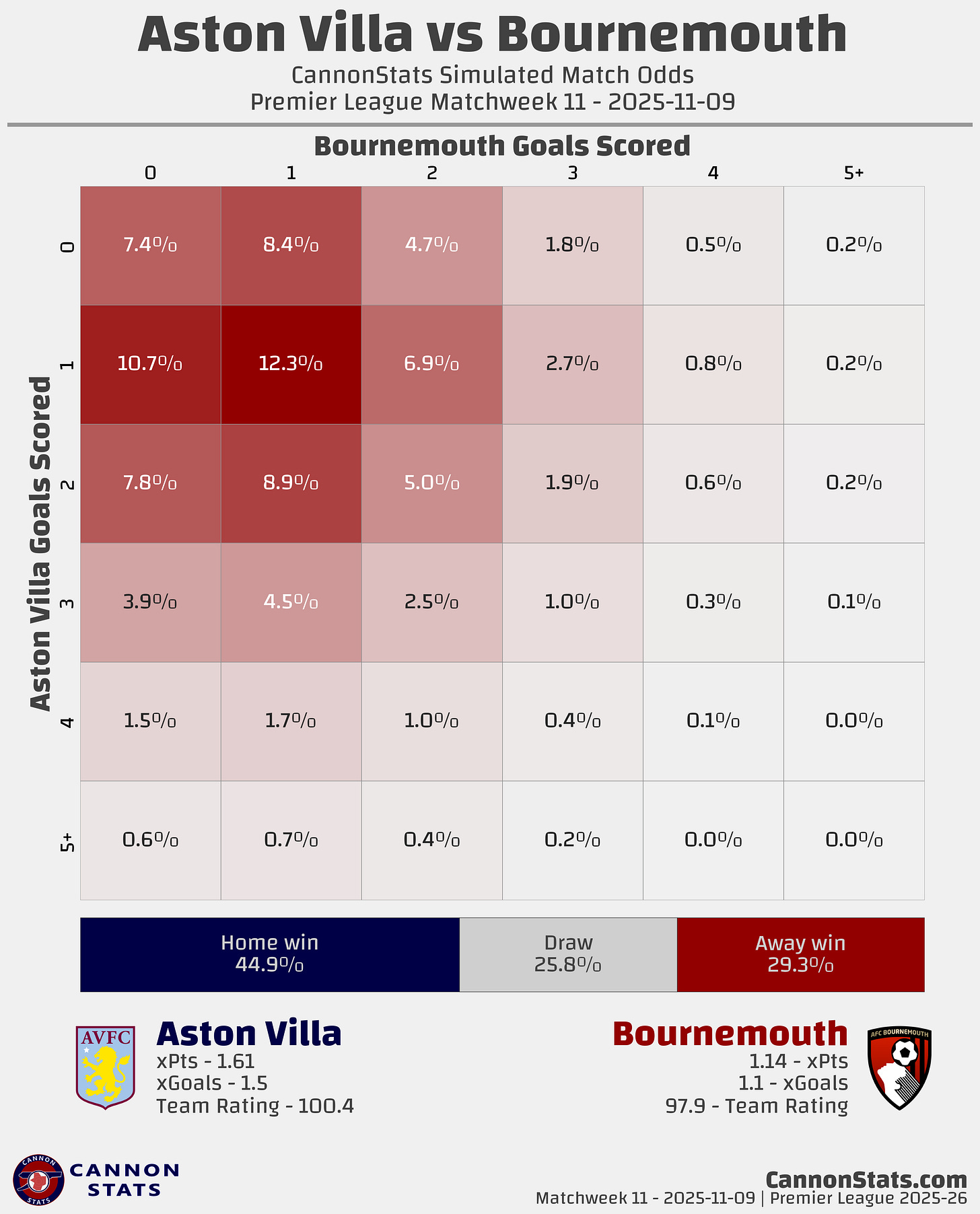 Aston Villa: Scott - 44.9%, Betting - 41.0%, Opta - 49.9%