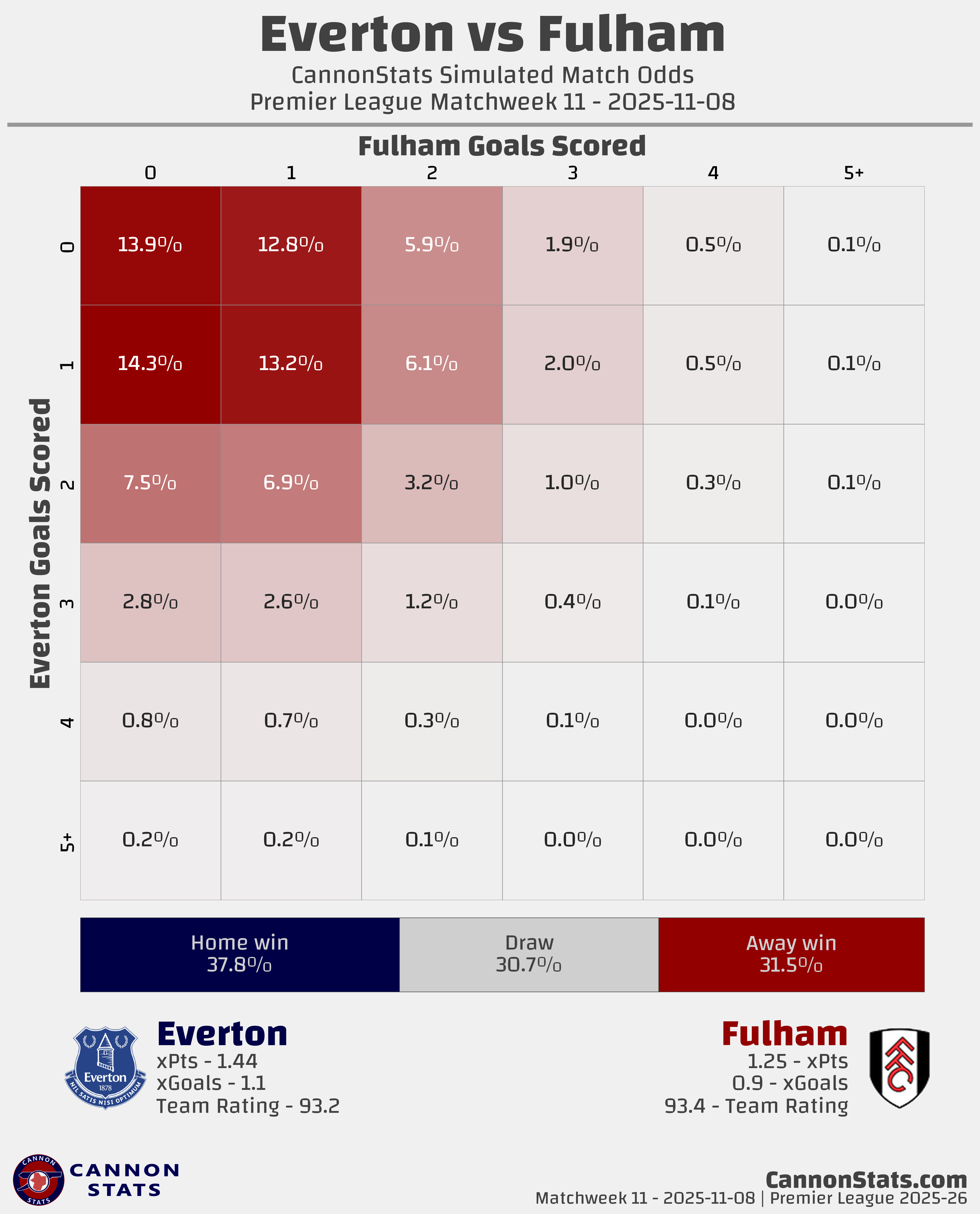 Everton: Scott - 37.8%, Betting - 42.8%, Opta - 45.8%