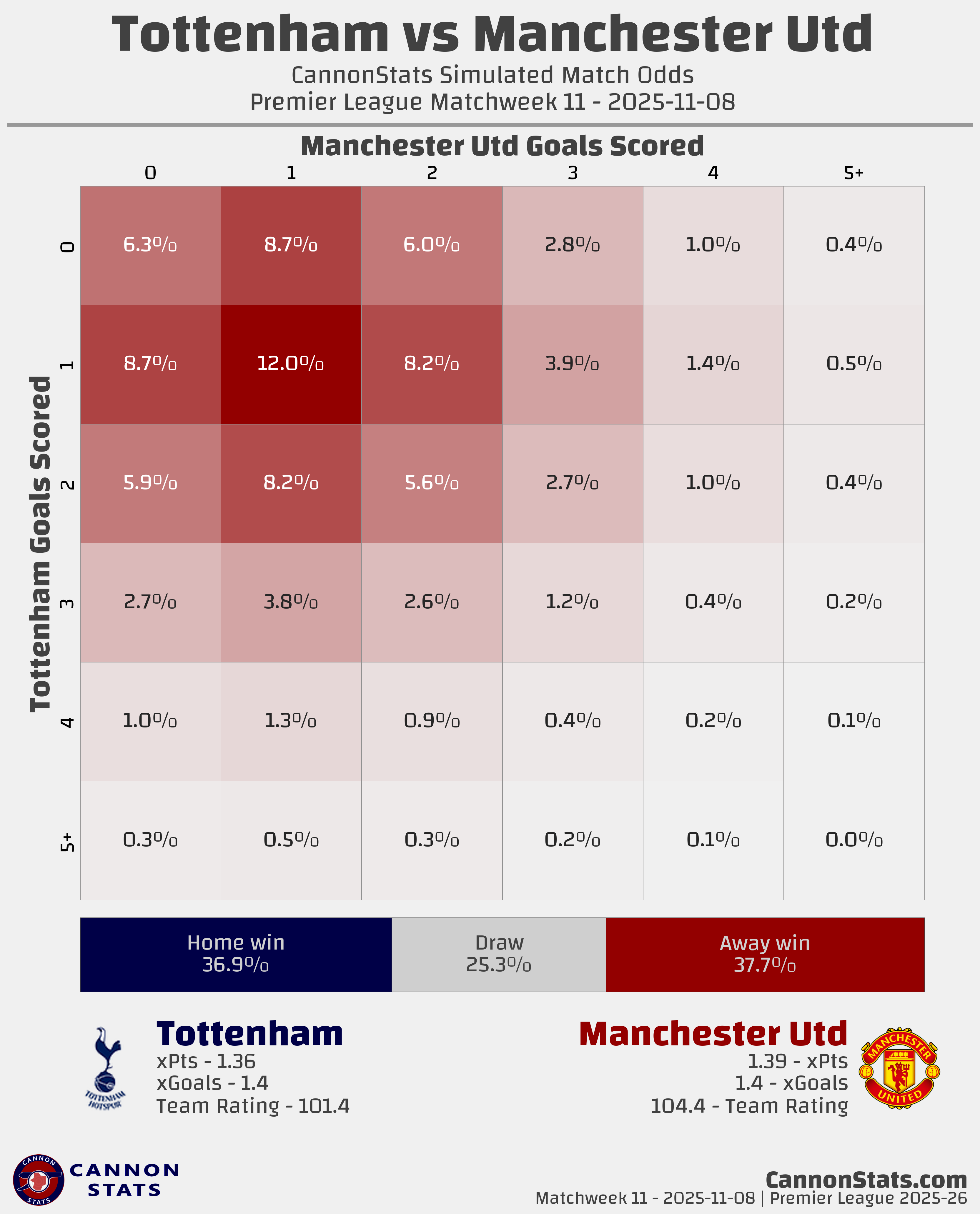 Spurs are the team that has the most air in their numbers so far this season, on the underlying numbers they have not made meaningful strides here since last season. I am still a bit worried about Manchester United trying to break them down and not leaving themselves open but it’s Spurs.