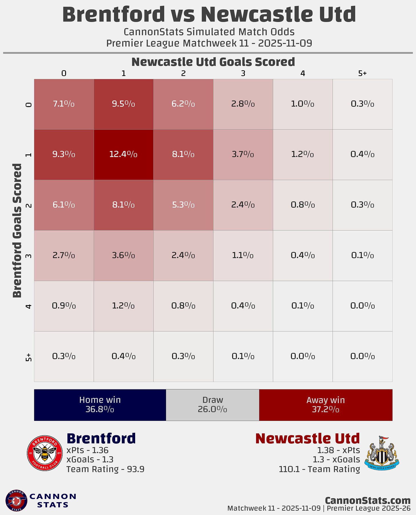 Brentford: Scott - 36.8%, Betting - 33.7%, Opta - 37.1%