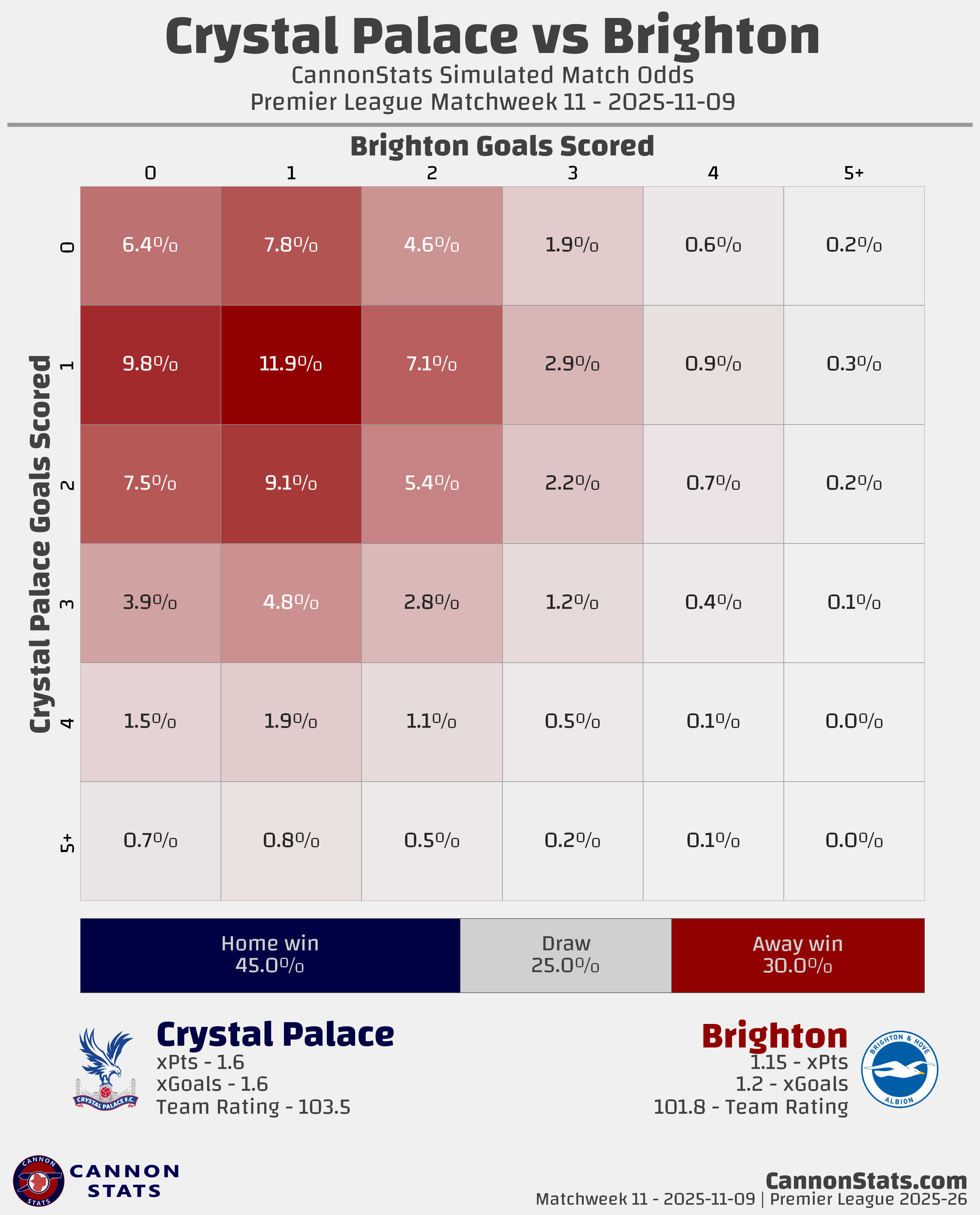 Brighton: Scott - 30.0%, Betting - 30.4%, Opta - 25.6%