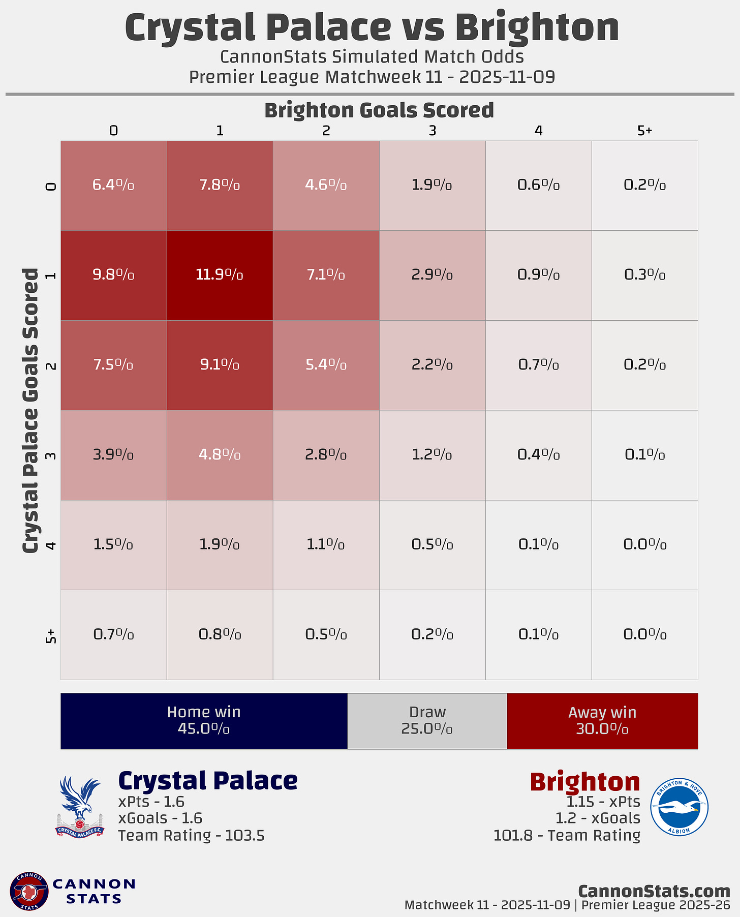 Crystal Palace: Scott - 45.0%, Betting - 41.9%, Opta - 48.7%