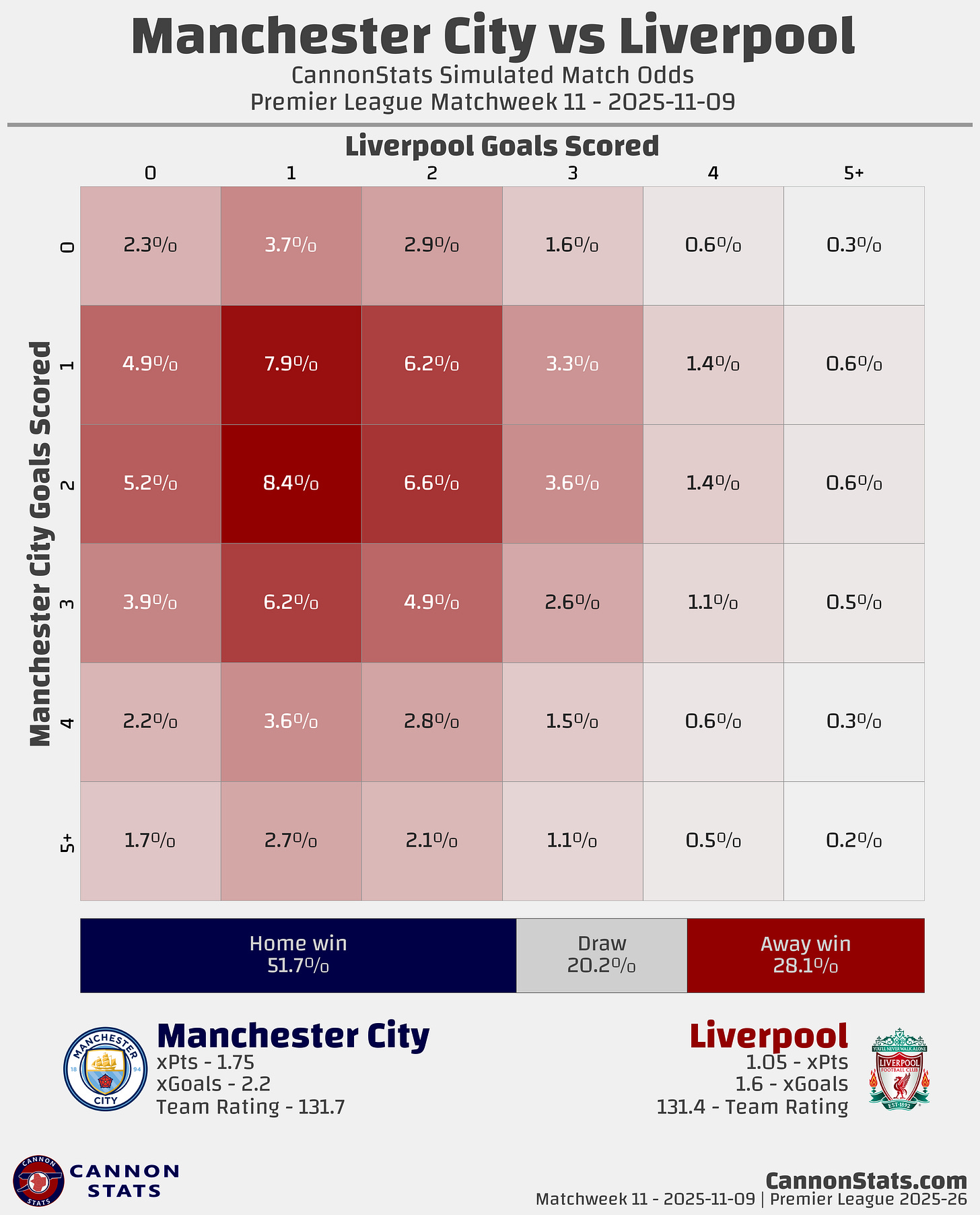 Manchester City: Scott - 51.7%, Betting - 49.2%, Opta - 45.4%