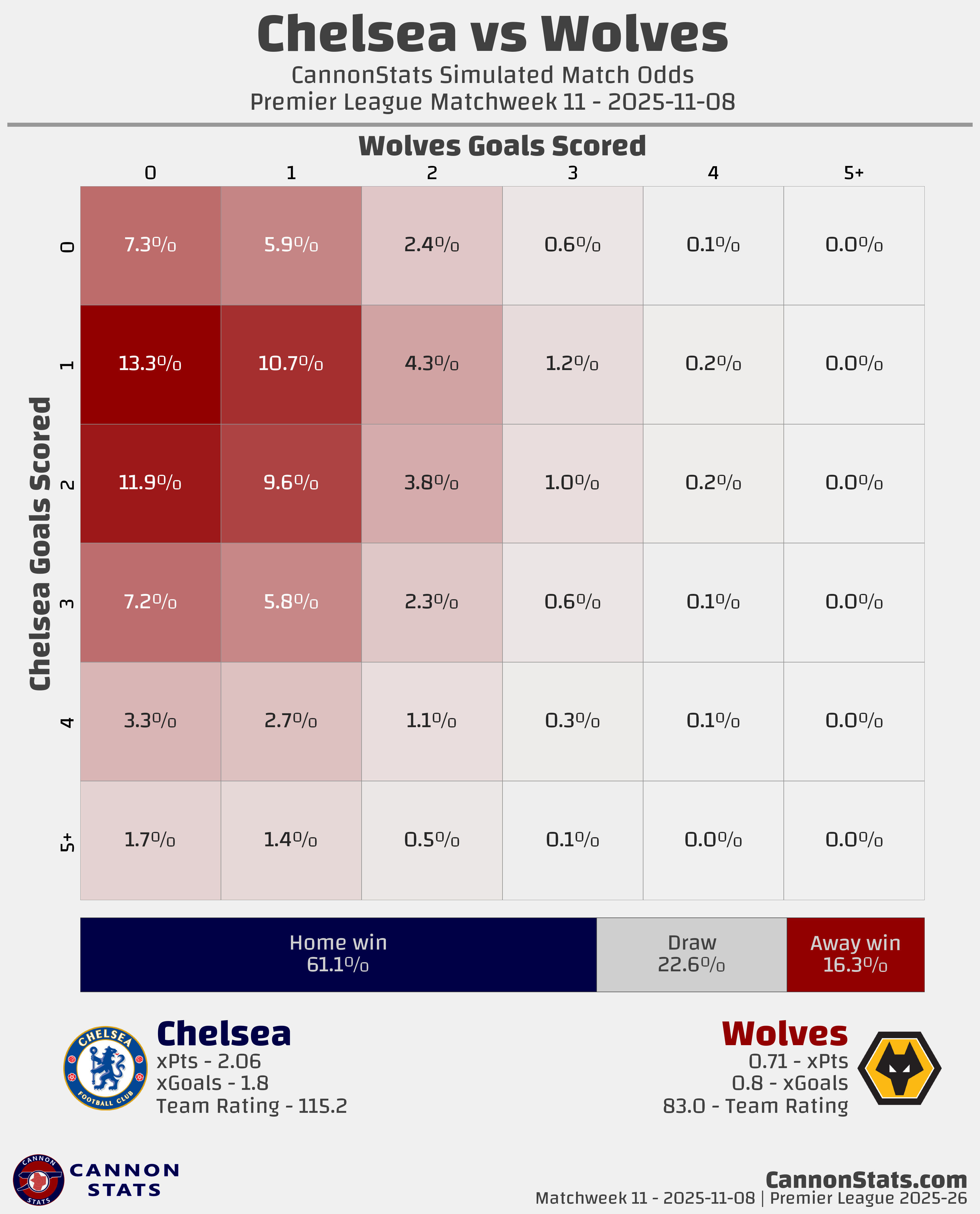 Chelsea: Scott - 61.1%, Betting - 69.3%, Opta - 73.2%
