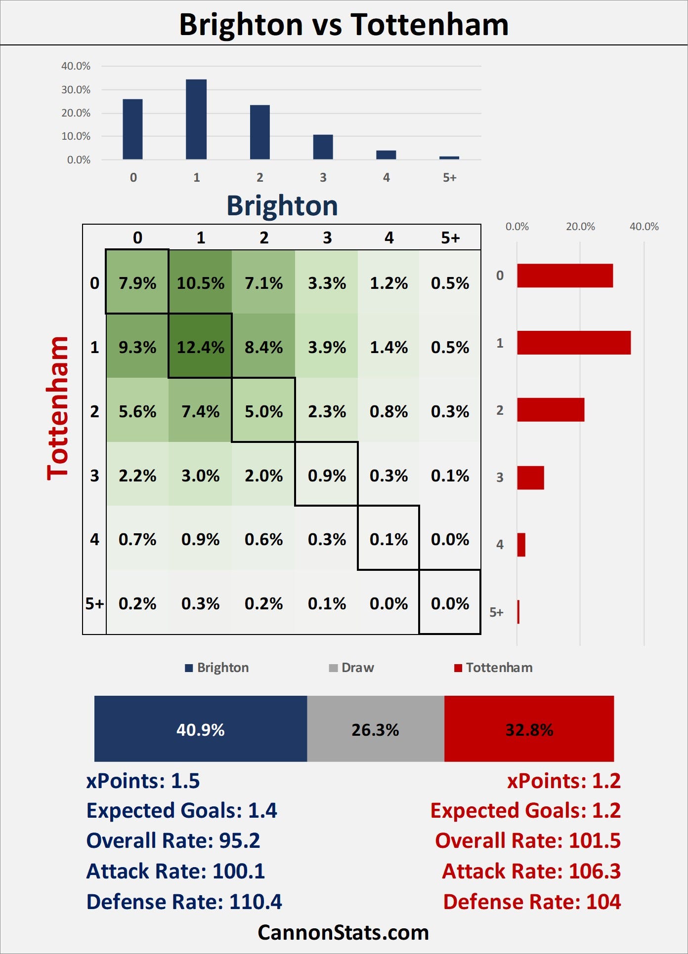 Brighton: Scott - 40.9%, Betting - 40.9%, Opta - 47.4%