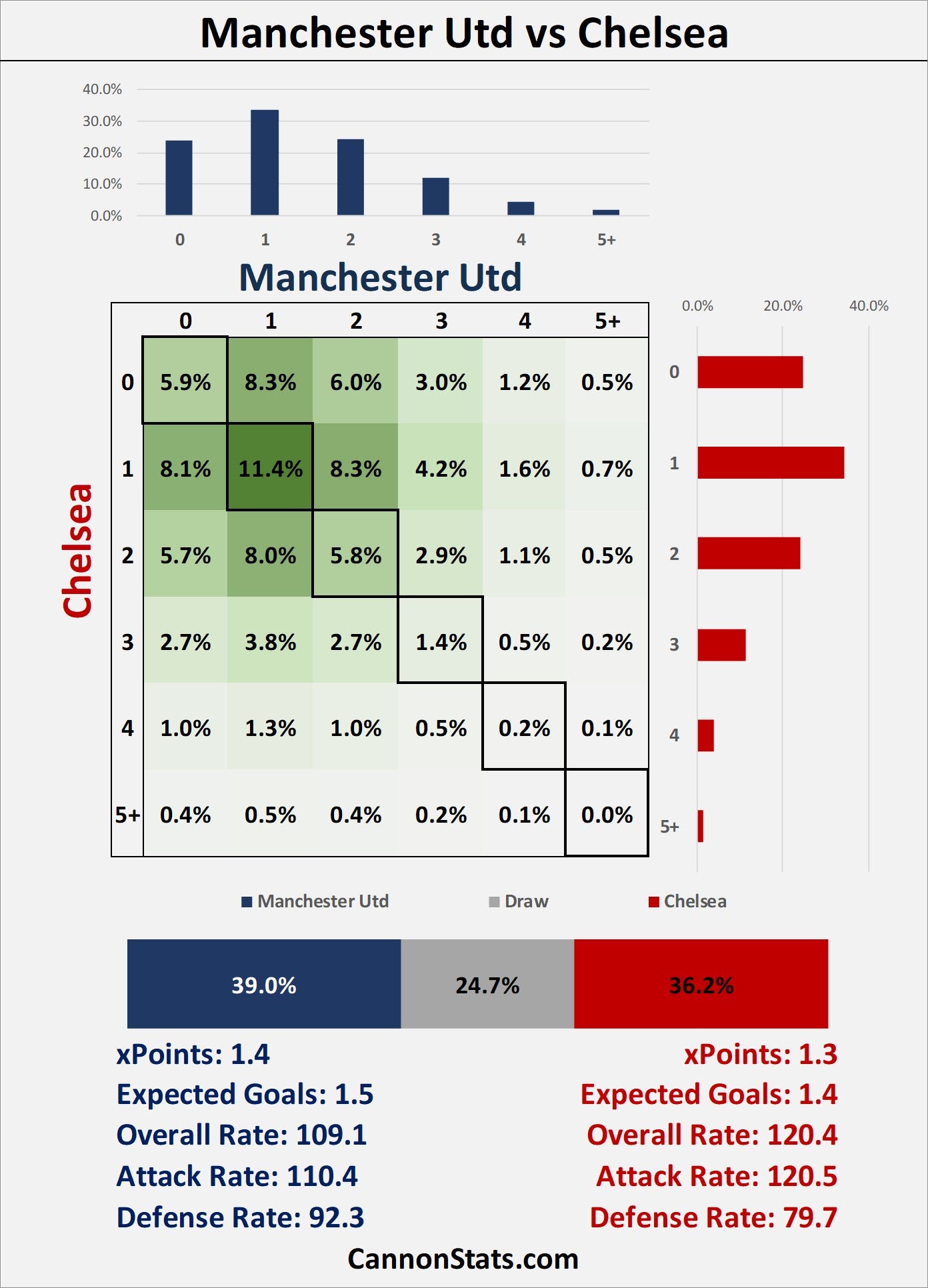 Chelsea: Scott - 36.2%, Betting - 39.1%, Opta - 46.8%