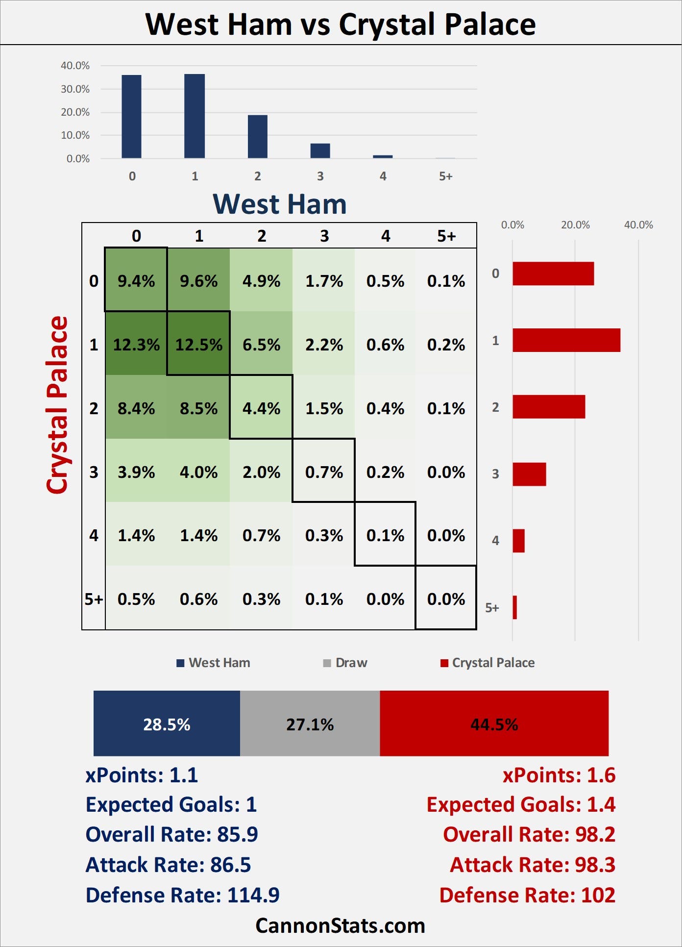 Crystal Palace: Scott - 44.5%, Betting - 40.1%, Opta - 48.9%