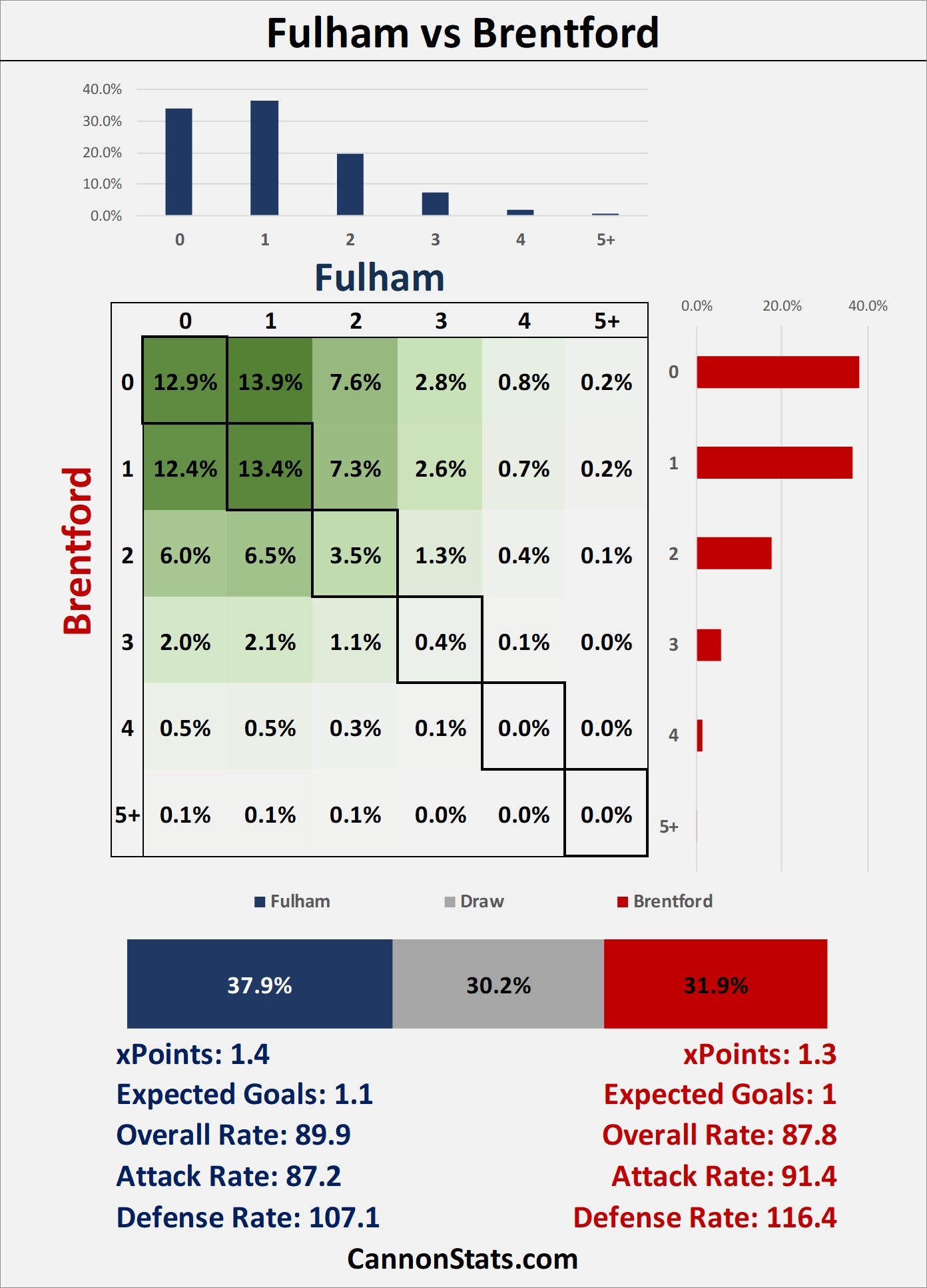 Fulham: Scott - 37.9%, Betting - 47.0%, Opta - 43.0%