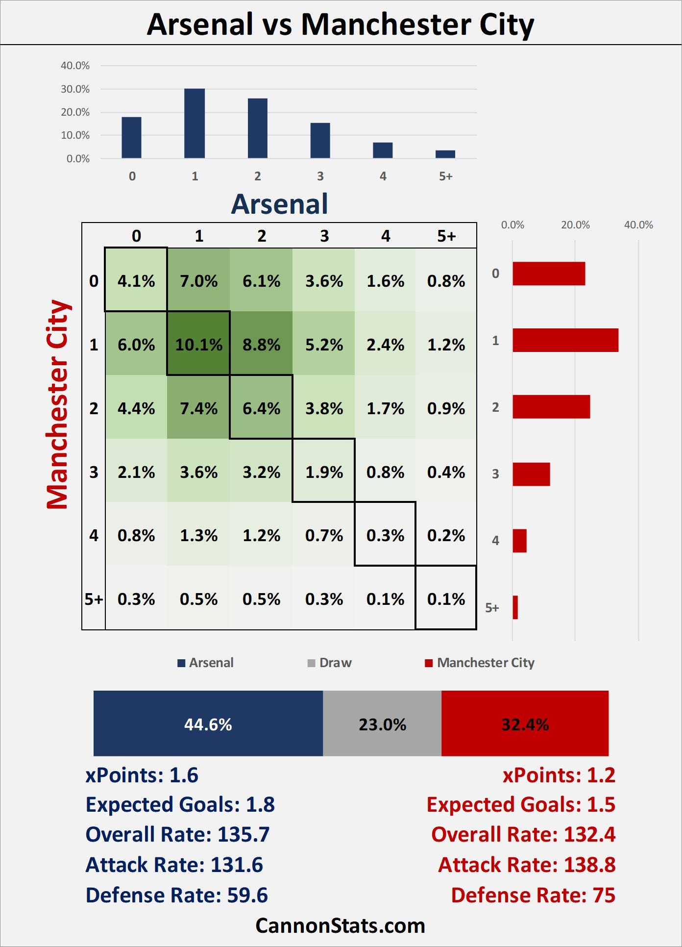 Arsenal: Scott - 44.6%, Betting - 49.4%, Opta - 52.2%