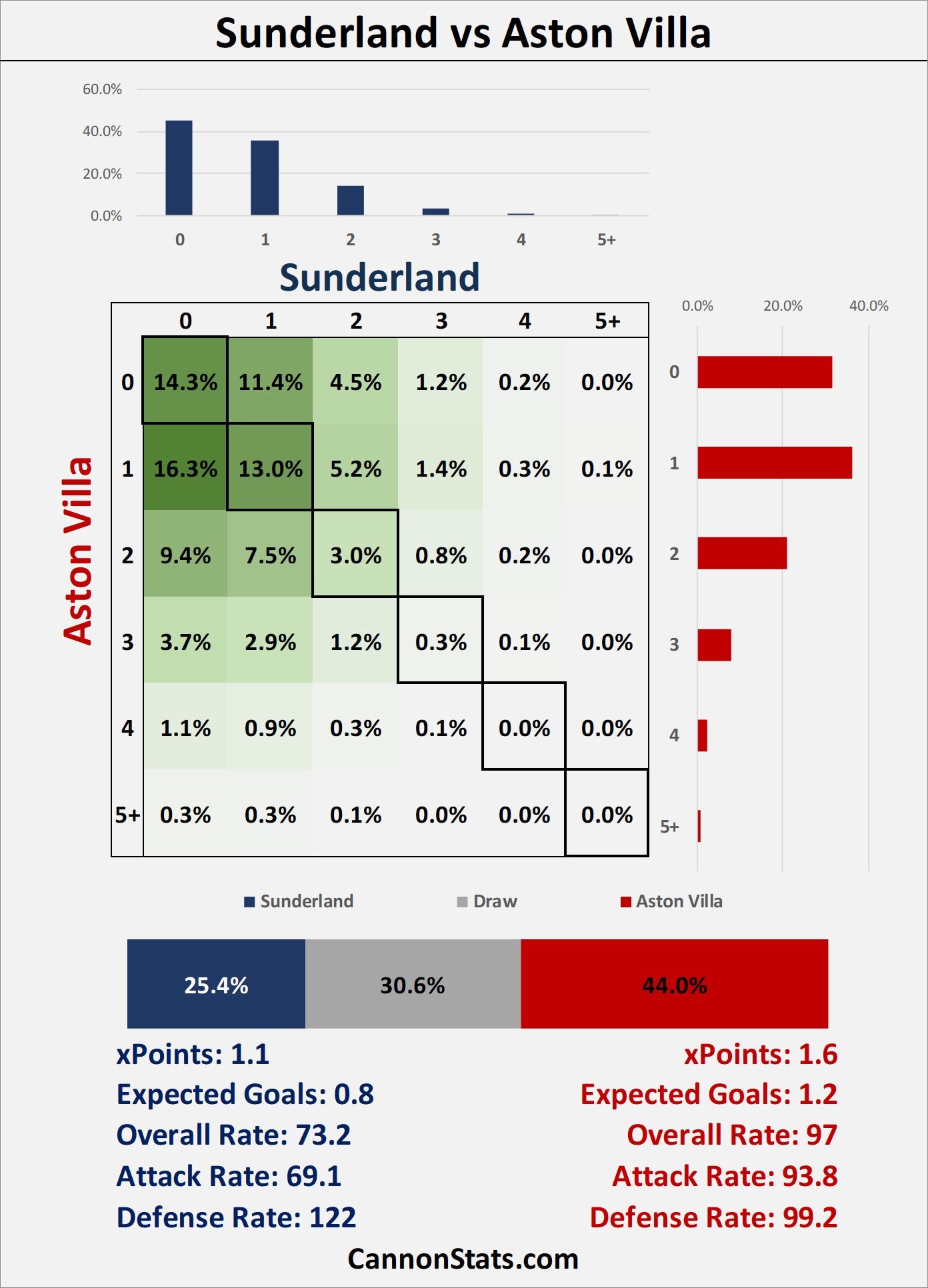 Sunderland: Scott - 25.4%, Betting - 26.9%, Opta - 22.5%
