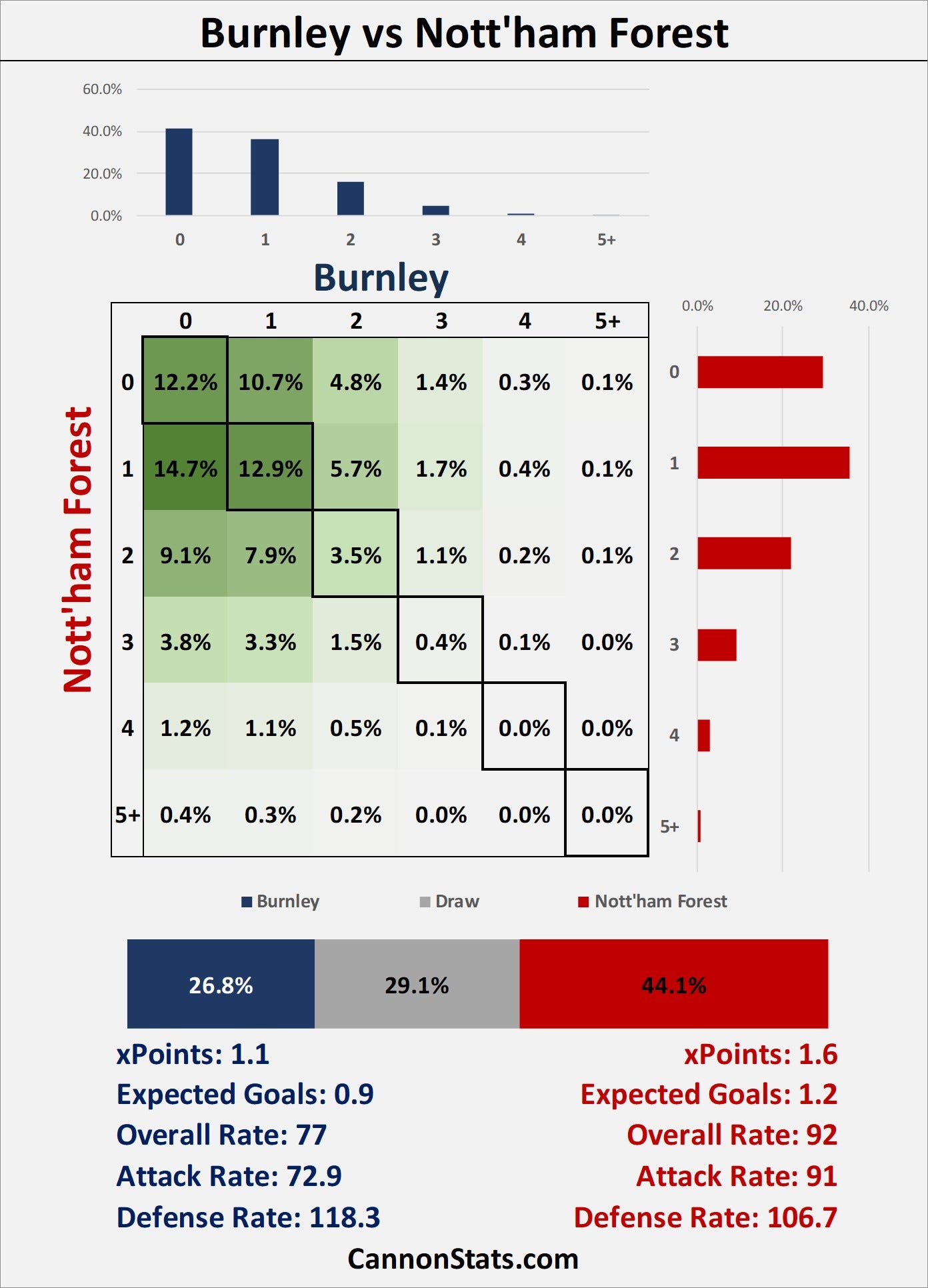 Nott'ham Forest: Scott - 44.1%, Betting - 42.9%, Opta - 42.4%
