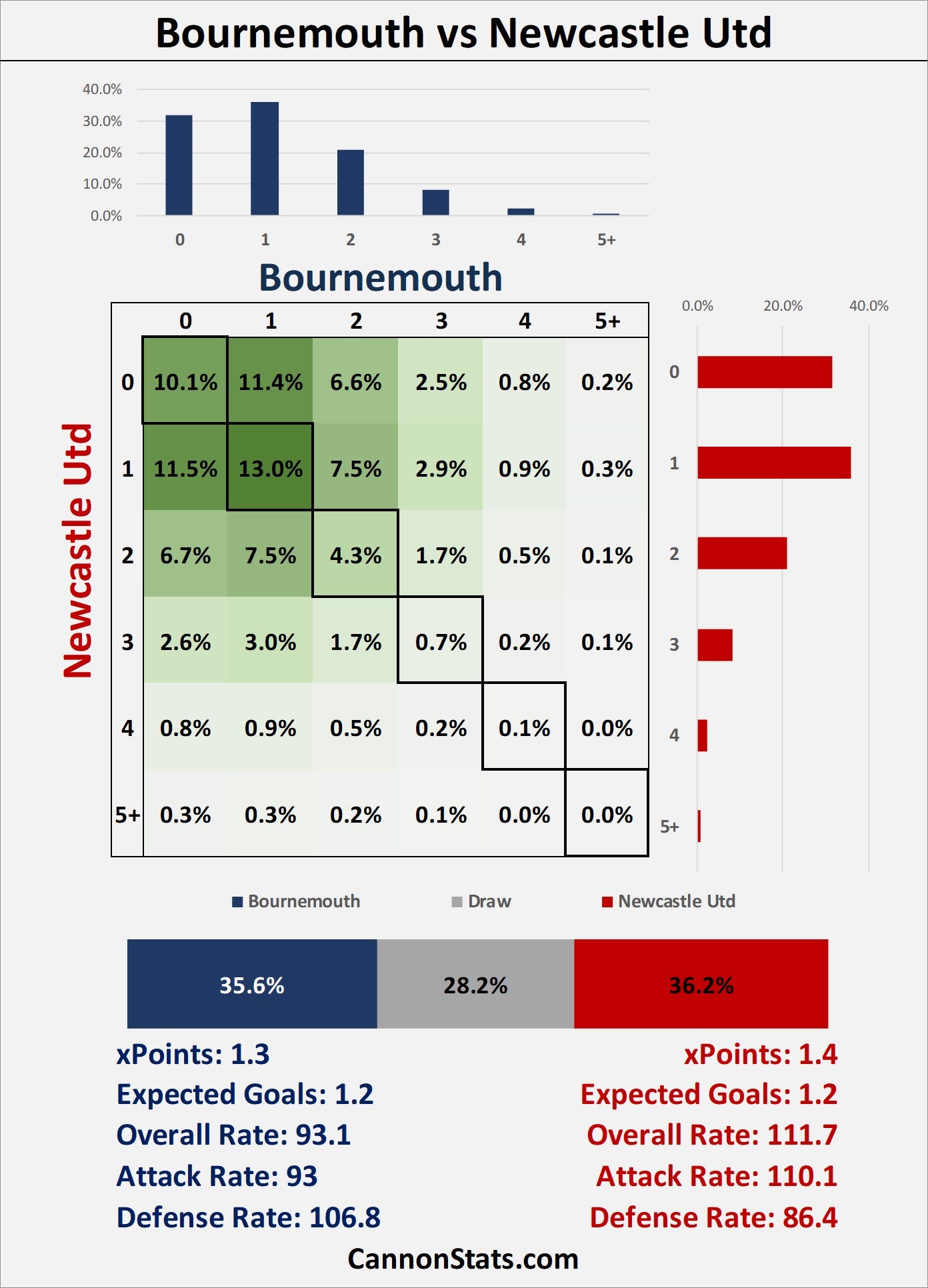 Bournemouth: Scott - 35.6%, Betting - 41.1%, Opta - 38.7%