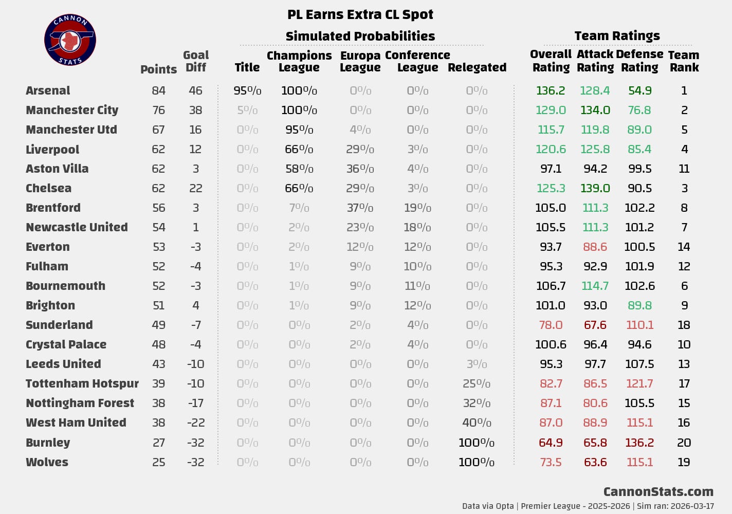This still has the threshold at 4th place, if the Premier League guarantees 5th place as a Champions League spot I will switch to this view.