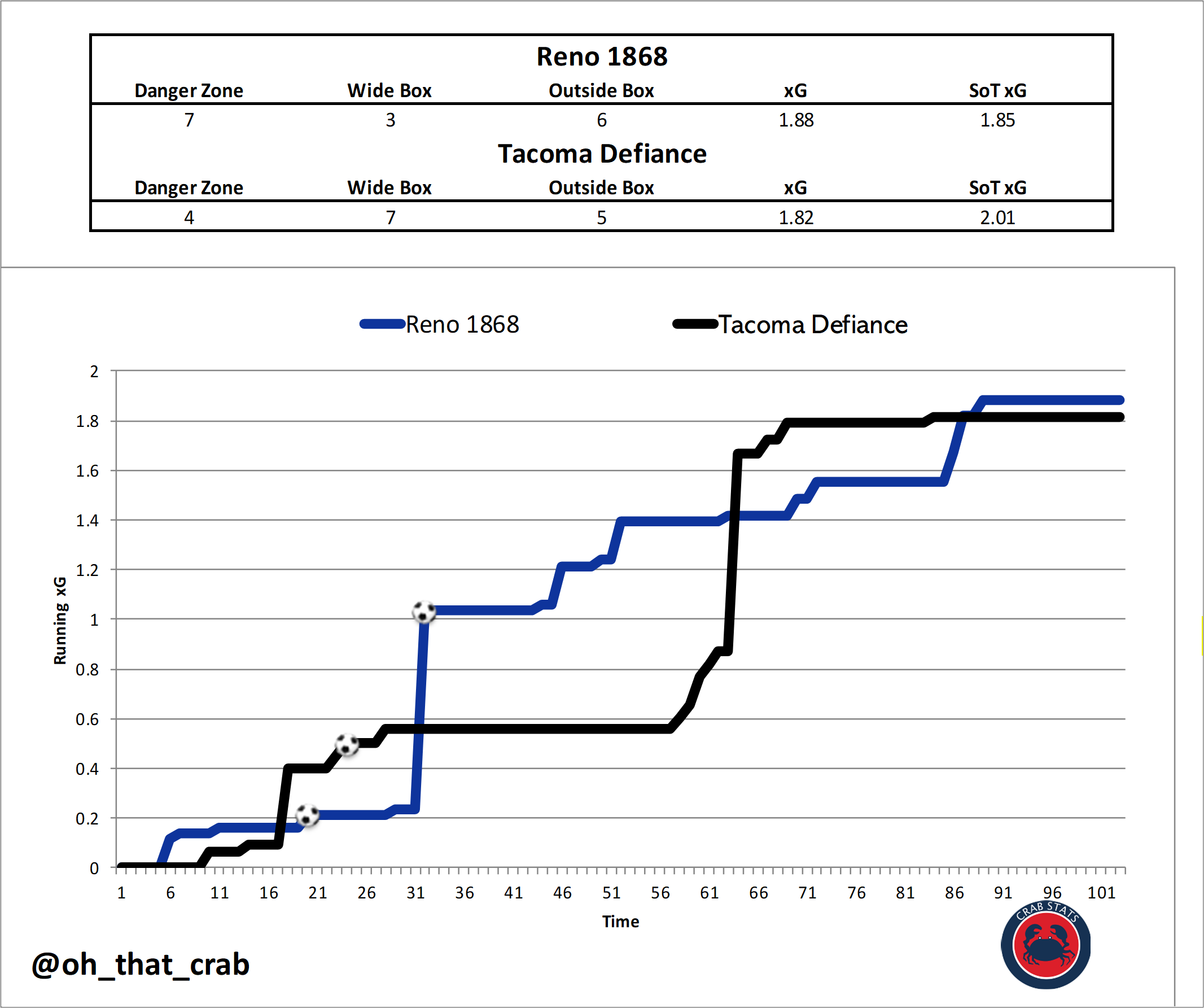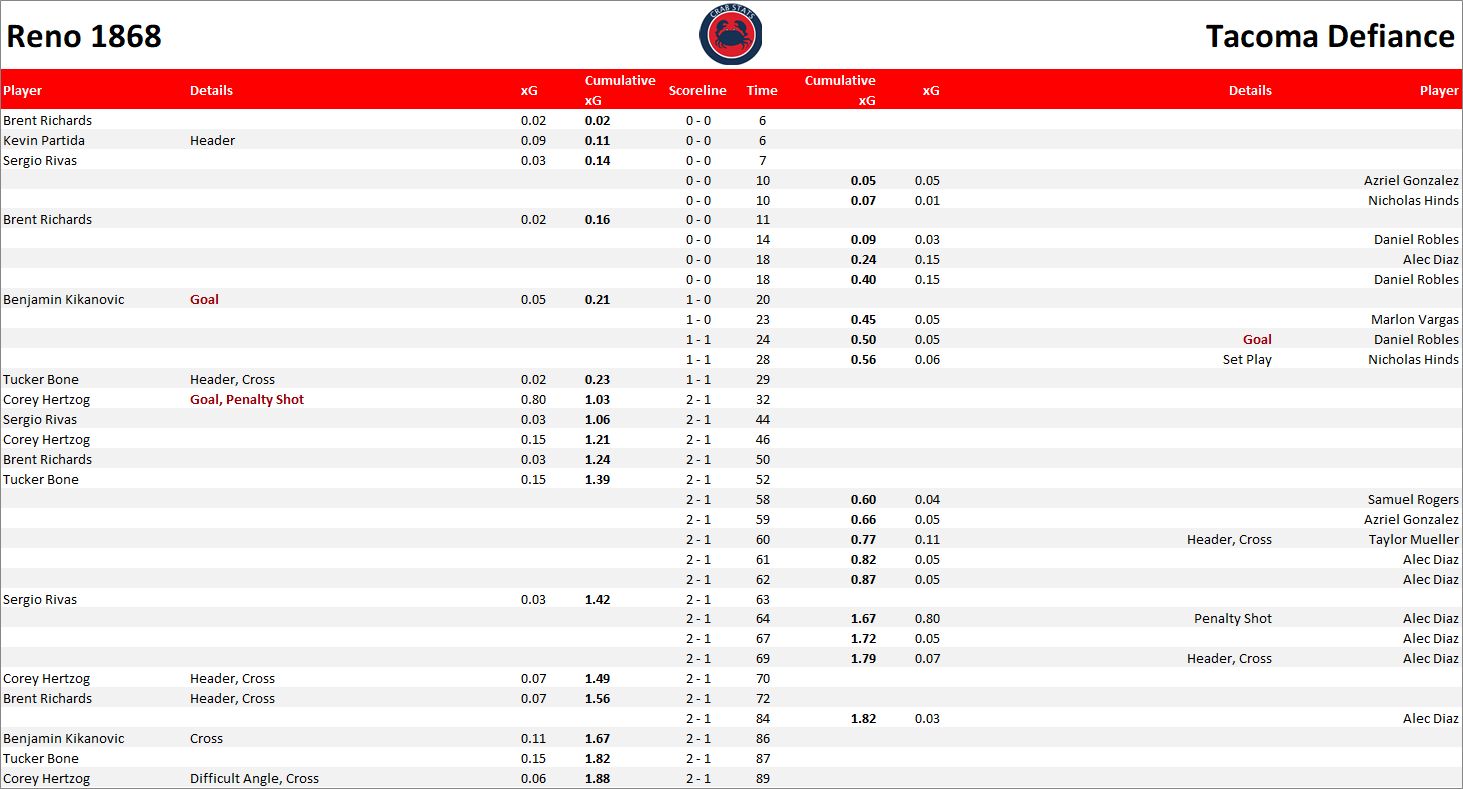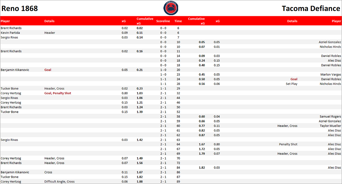 Reno 2 (1.9) - Tacoma 1 (1.8), 1.4 xPoints