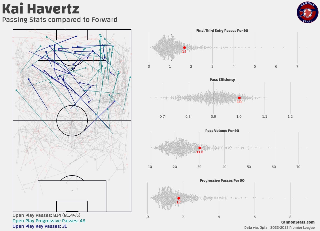 The area that might be the hardest for Havertz to be able to step in and replace the production is in the passing that he added in midfield.