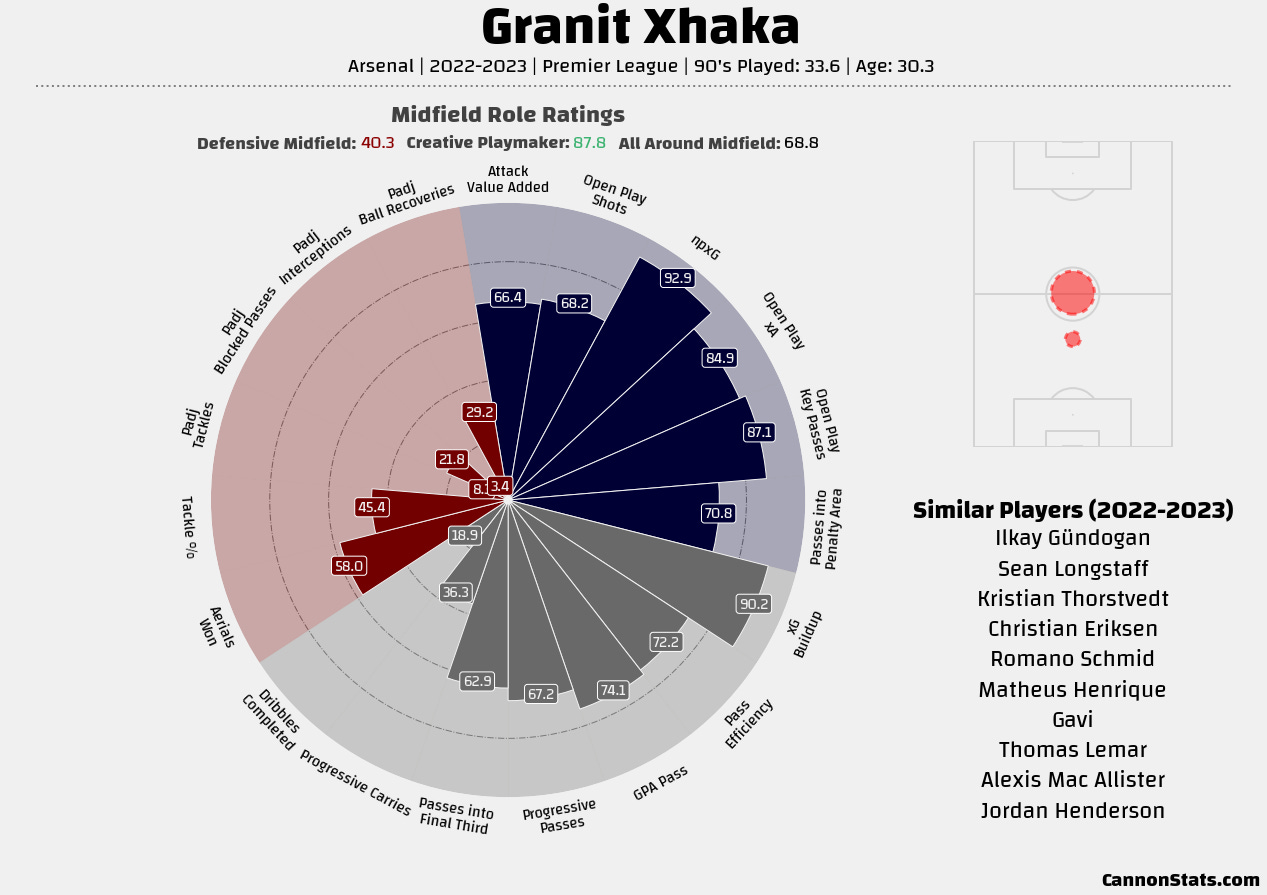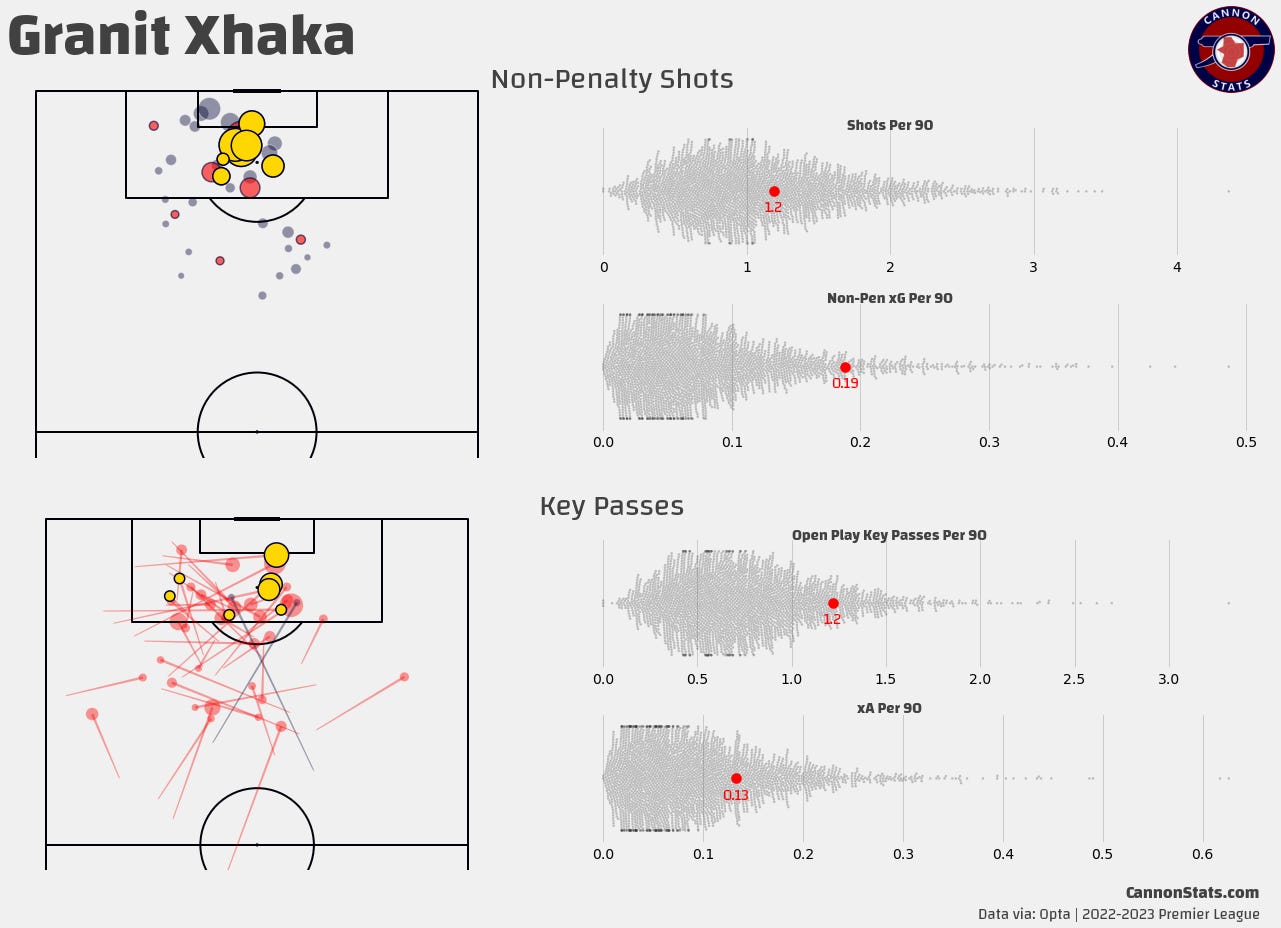 The shooting and creating is probably the best place to start. This was perhaps the biggest question mark for Xhaka as he transitioned from a player who operated more in the final third to a player in the final third and in the box.