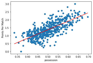 Possession is similar to field tilt but looks at the whole field rather than just in the final thirds. The relationship is strong but again not quite as strong to focus only on the final third possession (0.72 r2).