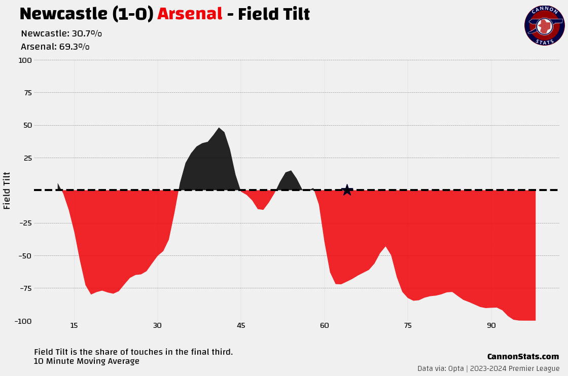Field tilt is a pretty good shorthand for understanding territorial control and dominance in a match.