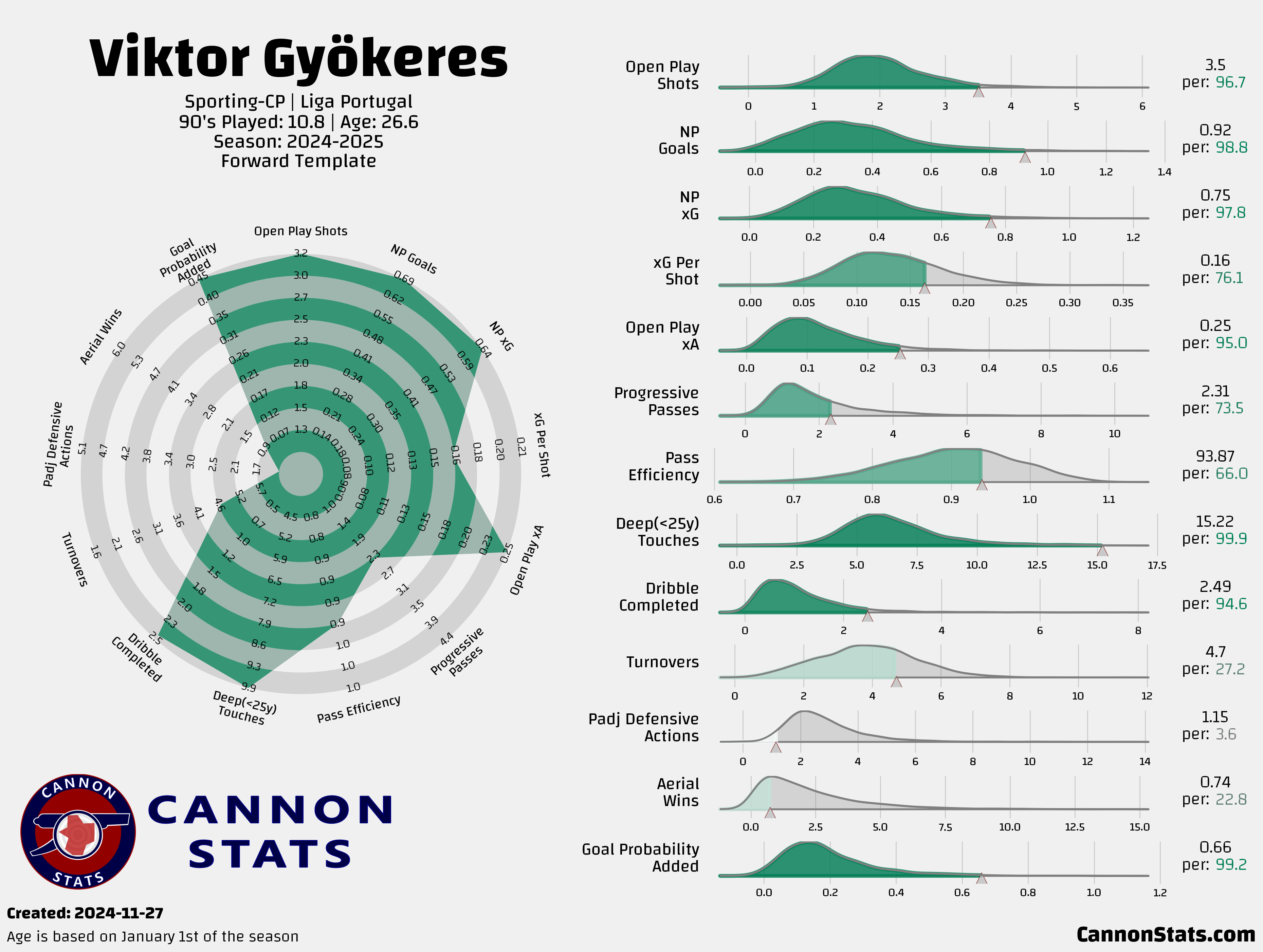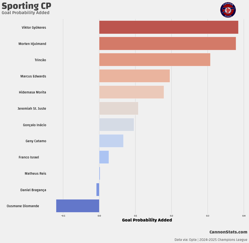 He is doing this on impressive shot volume, while maintaining excellent average quality, and being an all-around bully for Sporting as they have gone unbeaten thus far in the League (the loss to Arsenal was the first loss this season outside of the Portuguese Super Cup in extra time in all competitions).