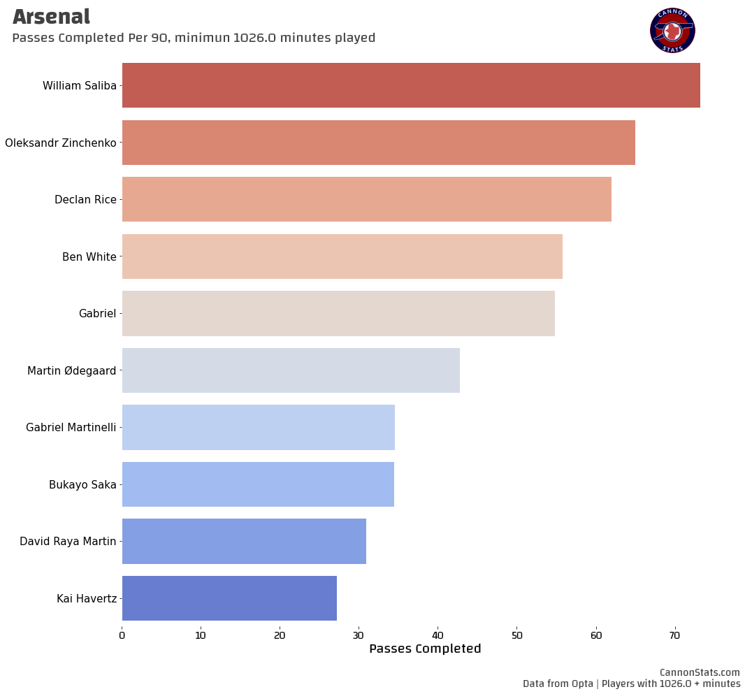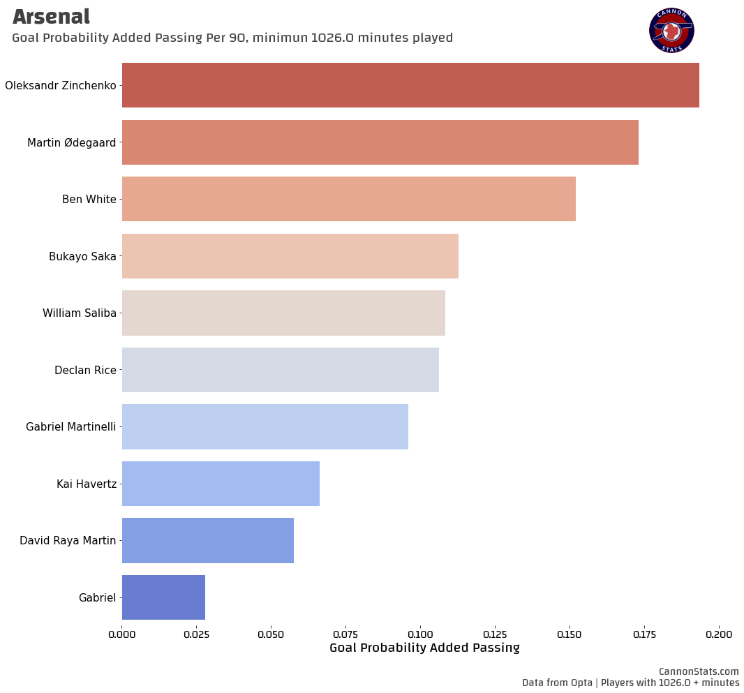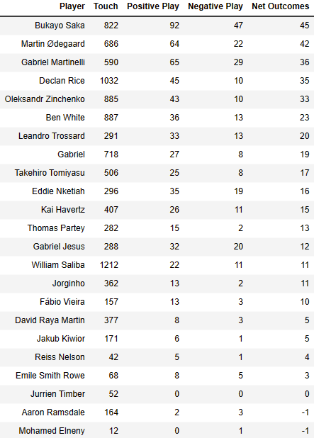 The focus of the player here Zinchenko, he comes in fifth on Arsenal for net outcomes. That is a solid showing and higher than many other players and perhaps surprisingly he does not have that many negative plays on his ledger, at least not compared to his reputation.