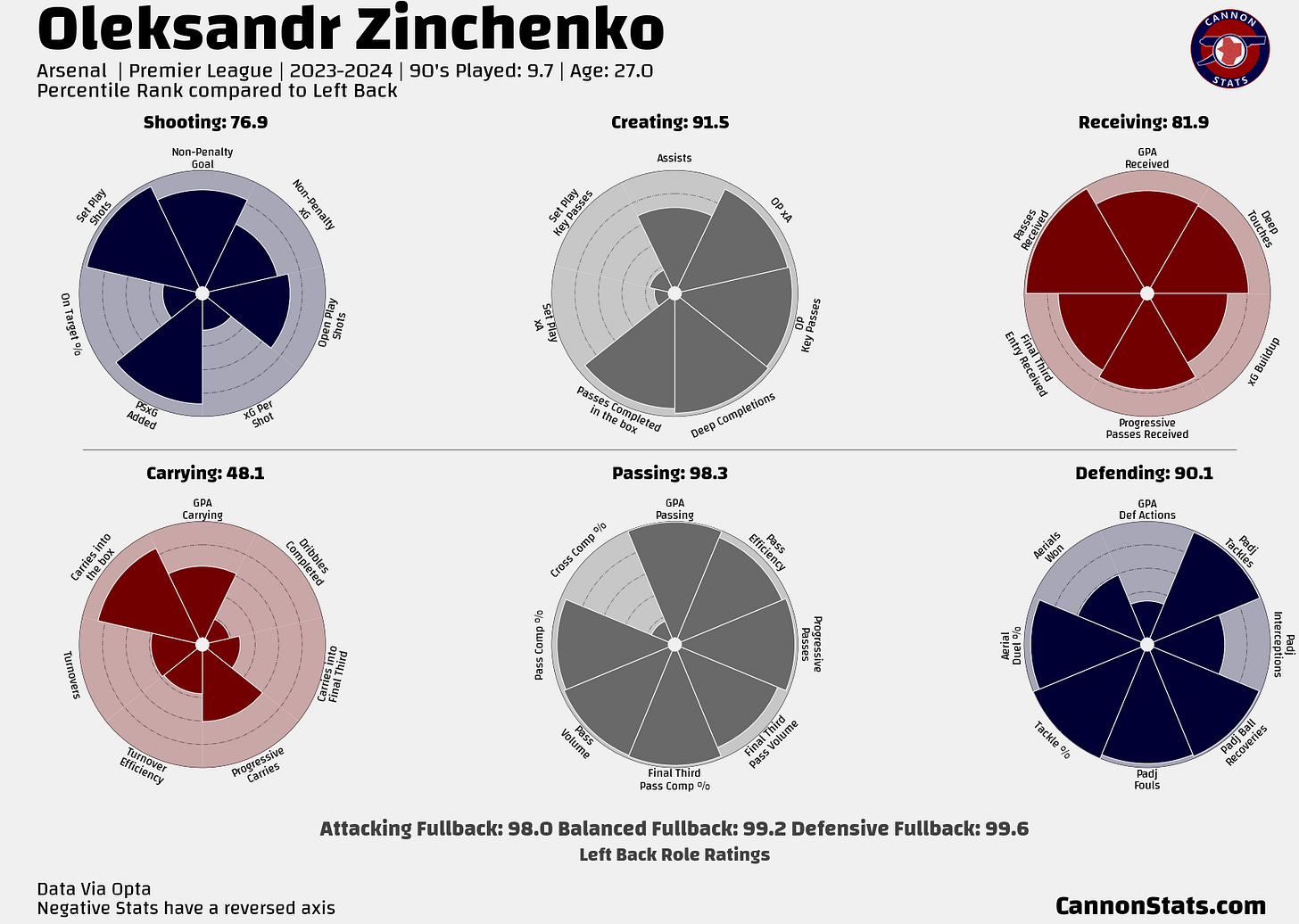 I agree with the sentiment here, Zinchenko is incredibly unique and while he can be a target for opposition attacks and can be loose, what he brings to the team more than puts him into the positive side of the ledger. Even today with some mistakes his play more than made up for it and put him in the black for adding rather than subtracting to the team.
