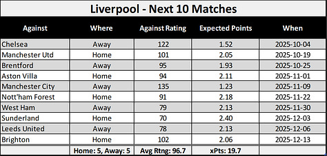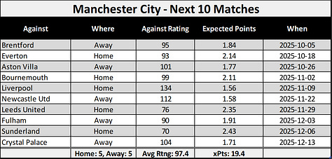 What makes this especially tantalizing is that this “easy” run corresponds with Liverpool and Manchester City looking at some challenging fixtures.