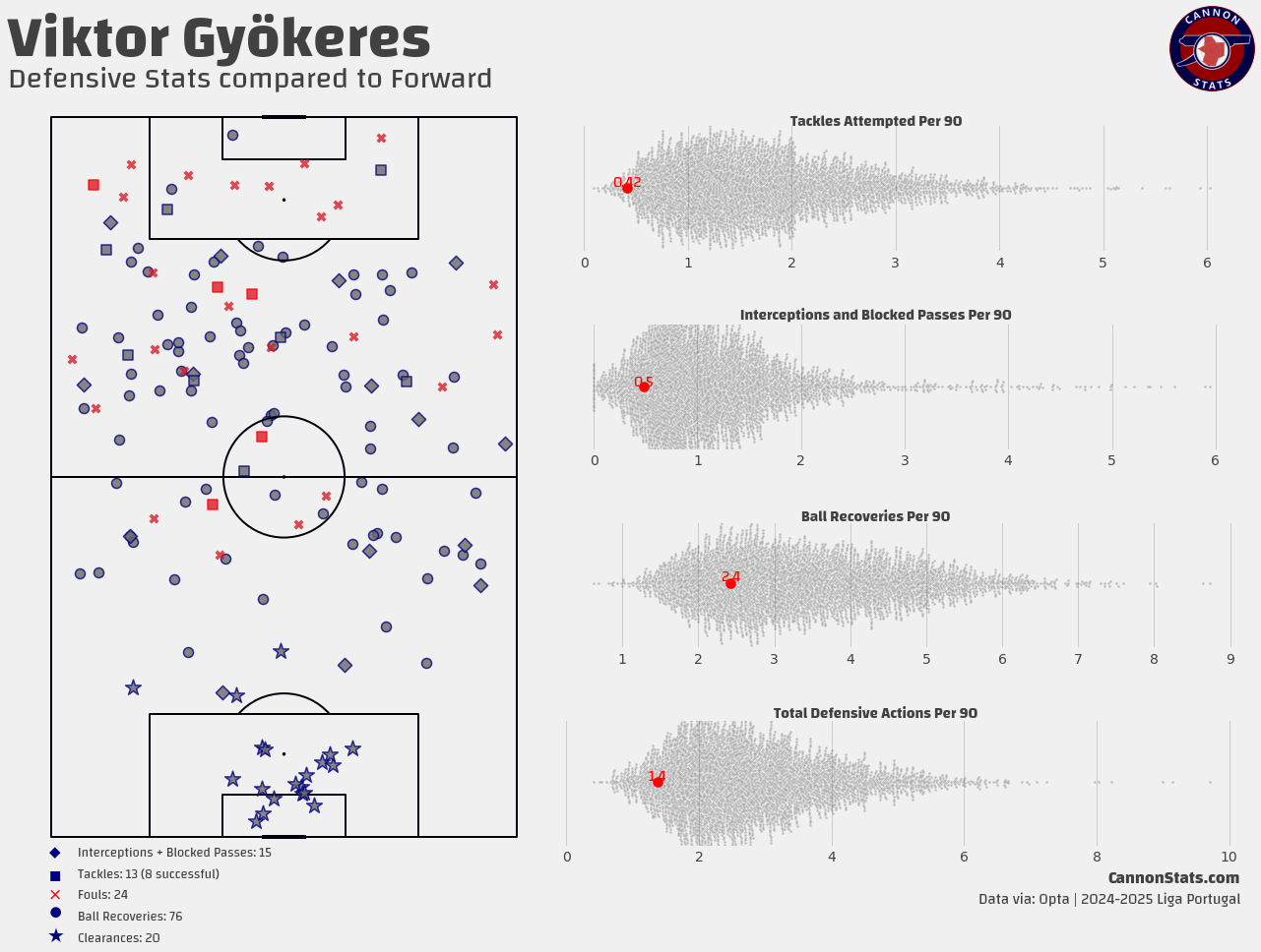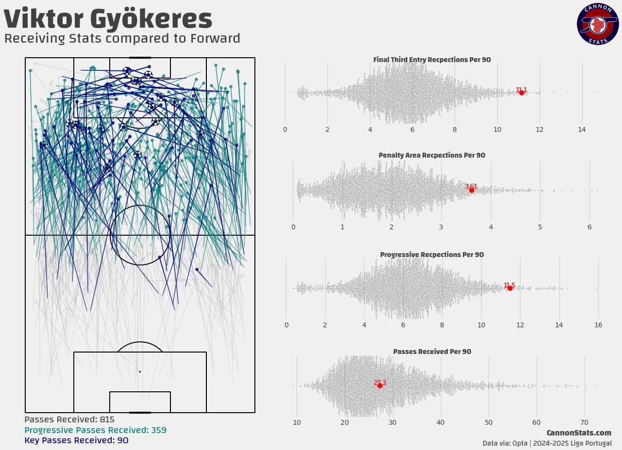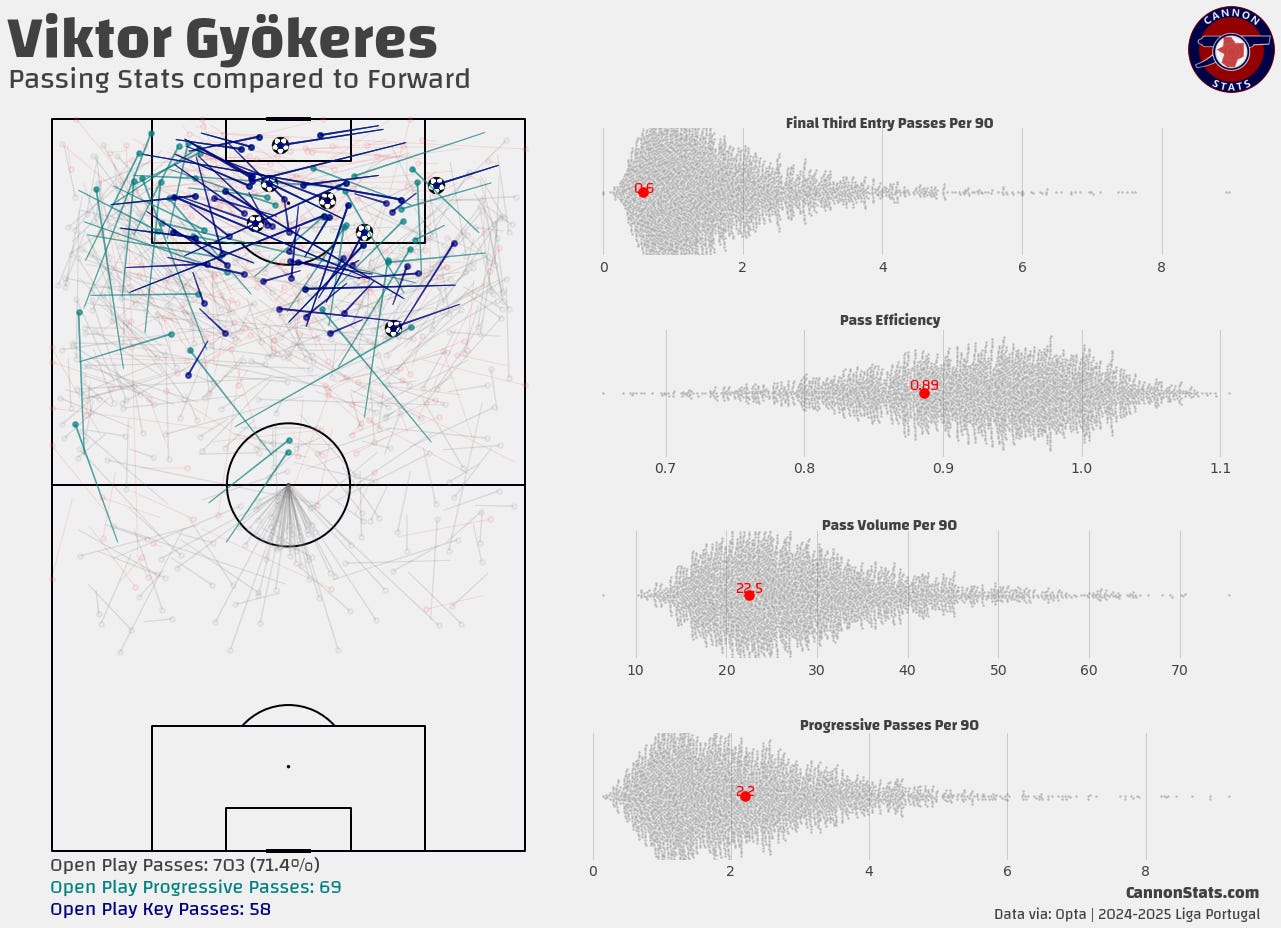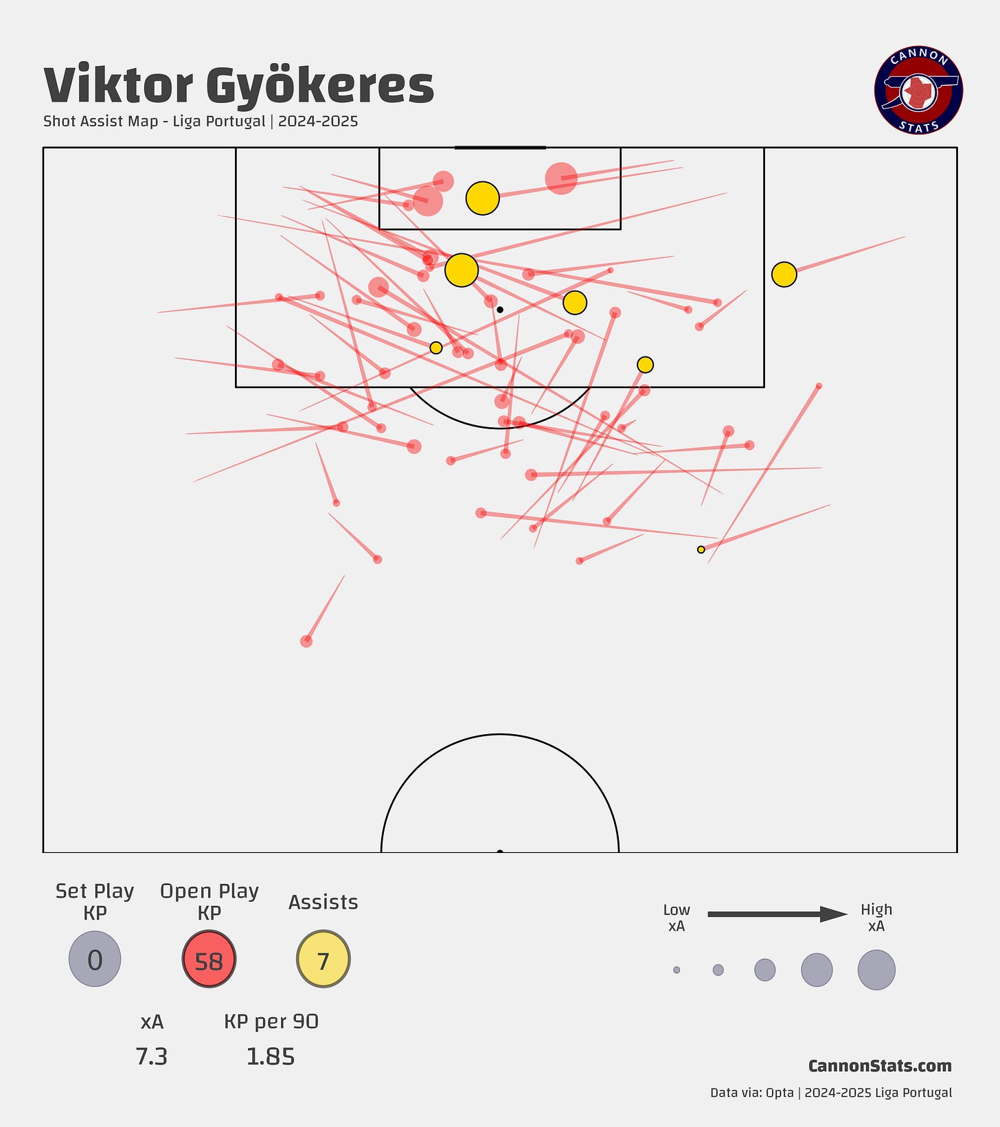 Gyokeres is a final third type player. He is not going to be confused with a false nine type that will want to drop in and combine and the passing numbers reflect that.