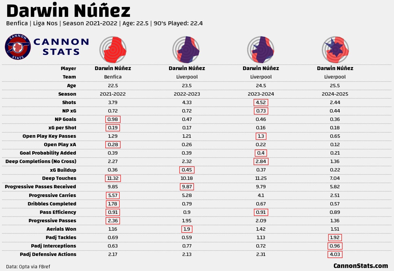 Overall, however his numbers stood up pretty well on the move to Liverpool outside of the goalscoring.