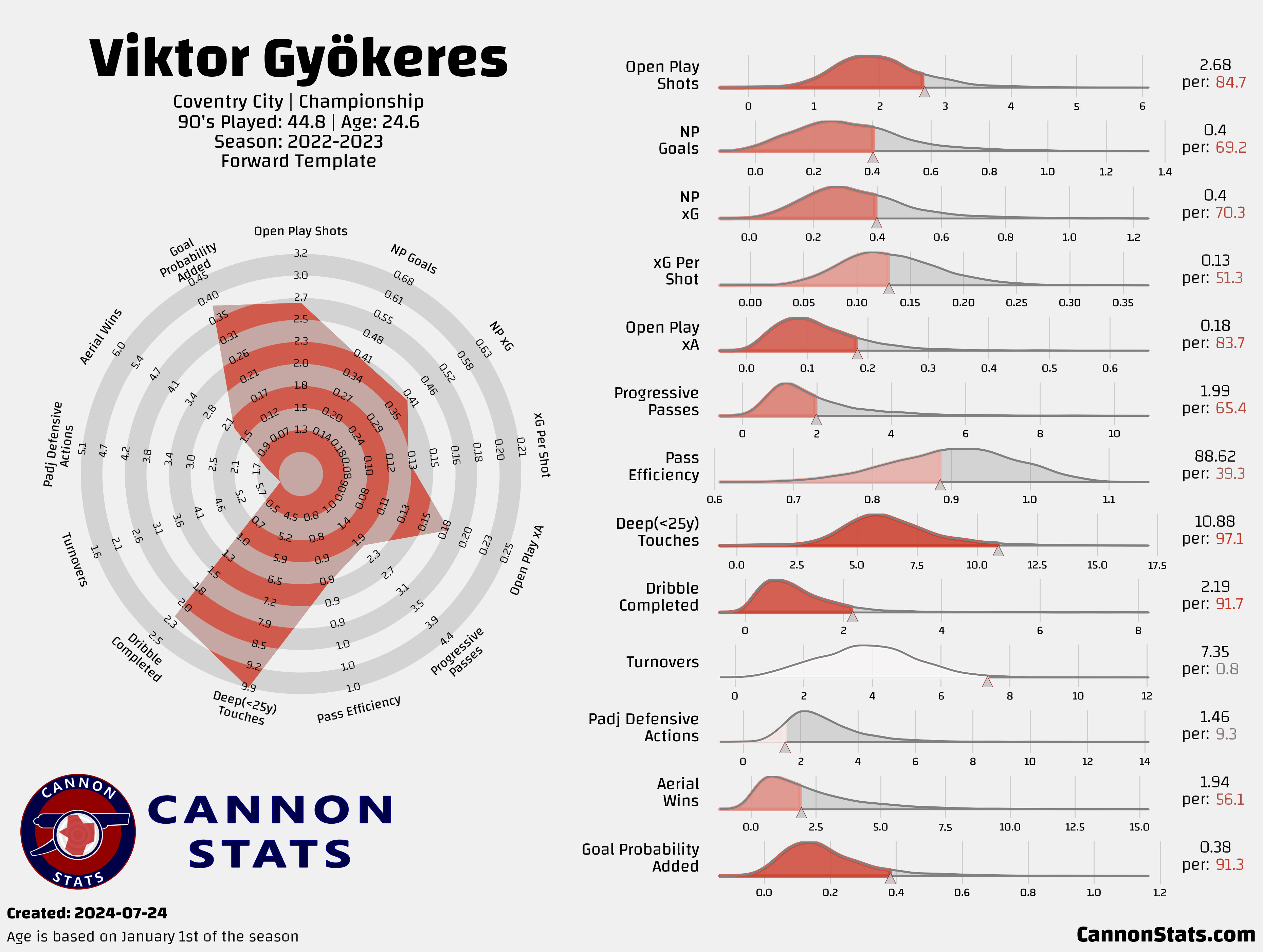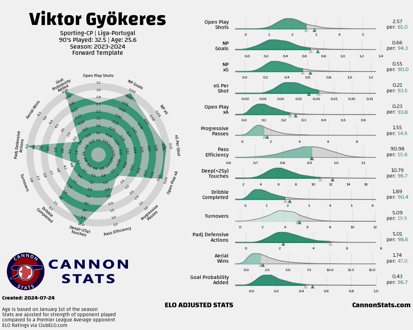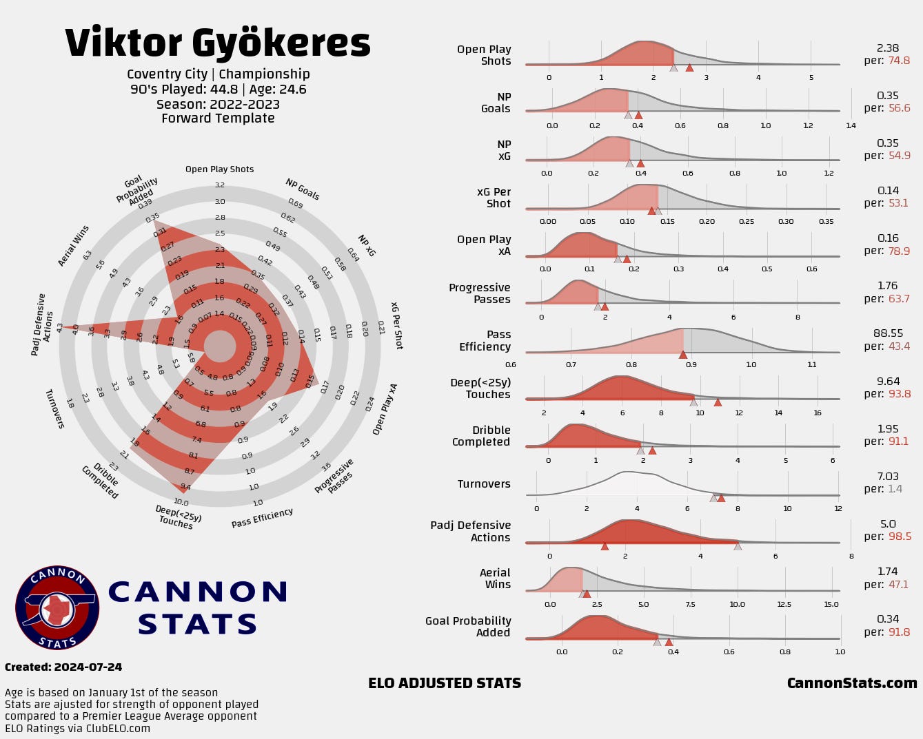 Gyökeres is a late bloomer who has taken a different route than normal for a top prospect. That doesn’t necessarily mean that he can’t perform at the level required for Arsenal but it does introduce more uncertainty about his actual quality where he might not live up to the expectations more often than other players with similar numbers.