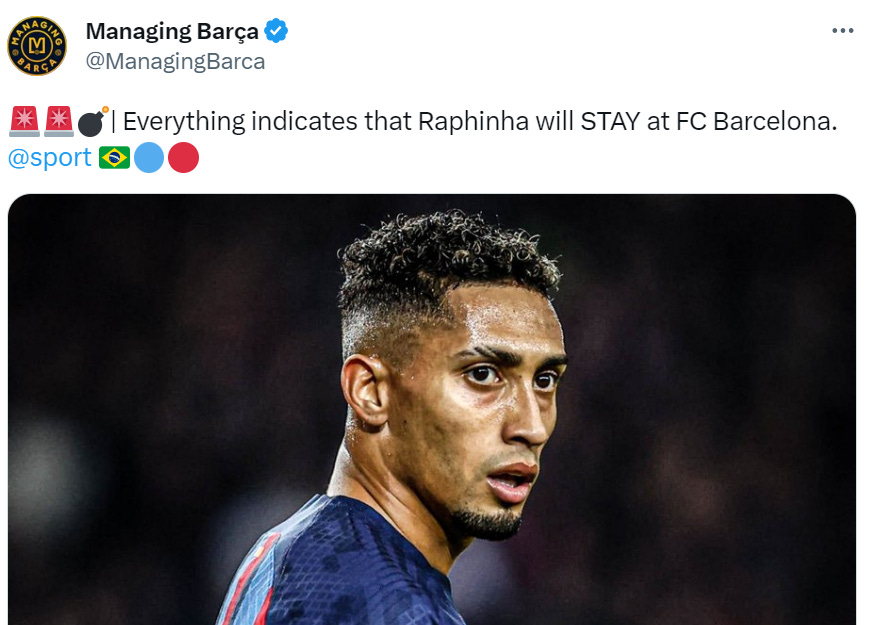 And, for what it’s worth, it seems like Barcelona don’t want to sell anyway. This is from 10 days ago, amid reports that Al-Nassr are trying to tempt the Brazilian winger to join Cristiano Ronaldo.