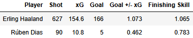 Dias is at just 90 shots but does look like he is profligate in front of goal. That sample size is still on the small side and because of that our estimate here of his finishing skill is adjusted towards league average.